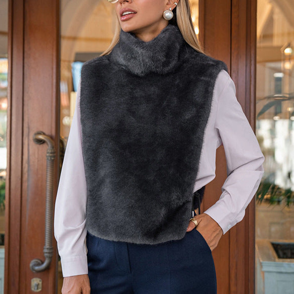 Light luxury plush vest vest women's high-end sense autumn and winter warmth imitation mink turtleneck temperament elegant vest top