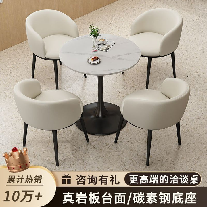Light luxury rock slab round table, sales office chair negotiation table and chair combination, milk tea shop casual high-end table