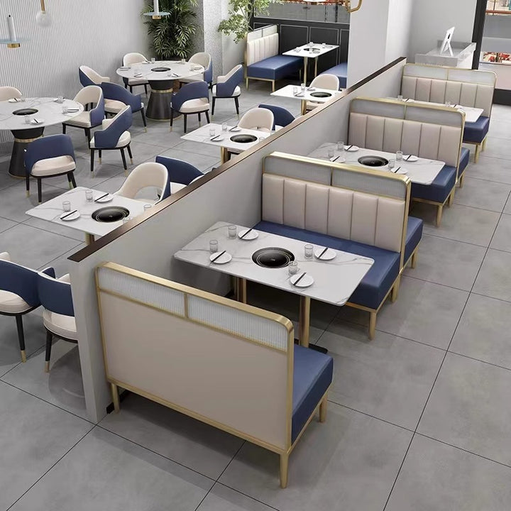 Light luxury western restaurant hotel dining table and chairs against the wall card seat sofa hot pot restaurant barbecue shop stainless steel tabl...