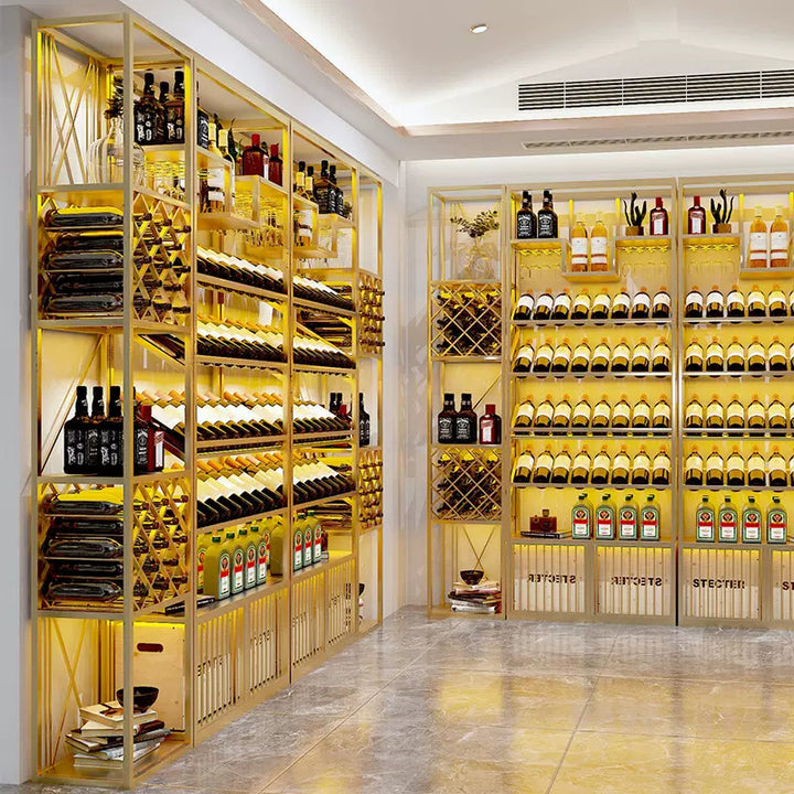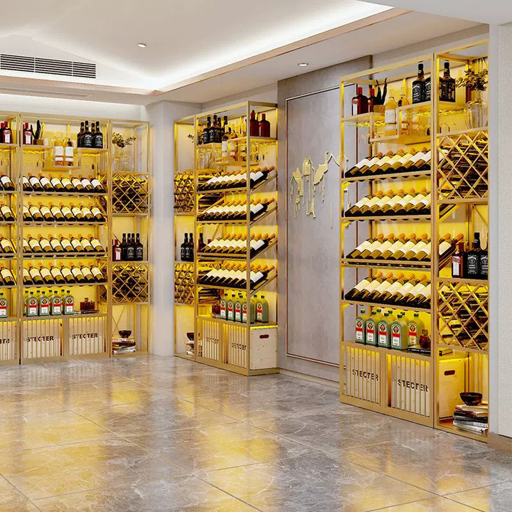 Light luxury winery wine cabinet red wine Baijiu display cabinet floor rack wrought iron wine...
