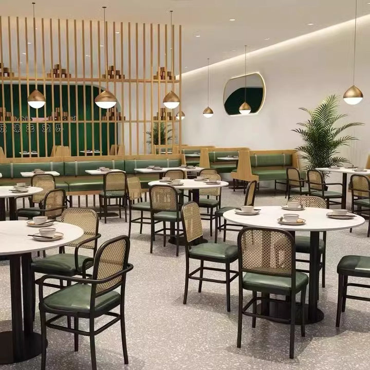 Light luxury wrought iron western restaurant card seat sofa table and chair industrial style milk tea shop coffee shop clear bar rattan table and c...