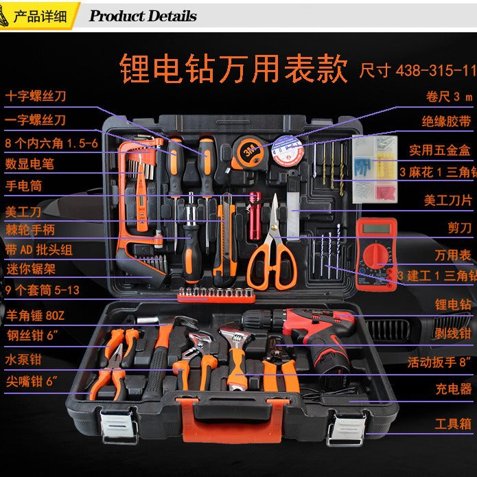 Lithium battery drill set 57-piece tool set, multimeter carbon steel tool set 077