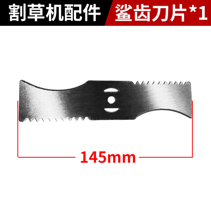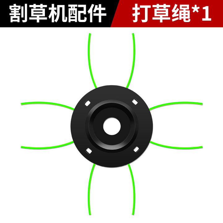 10 inch circular saw blade, 9 inch circular saw blade, 6 inch wire brush, Grass support for brushless lawn mower, Amphibious lawn head, 6 inch circular saw blade, 4 inch circular saw blade, straw head, One-word lawn rope, 9 inch one-word steel knife, 6 inch one-word steel knife, Squaltooth blade, Nylon blade, Blade base, Knife guard, Baffle, tank wheel, Lawn mower strap, 21V battery fast charger (European, American, British)), 12V battery charger, 5A charger backpack battery, Makita adapter cable |