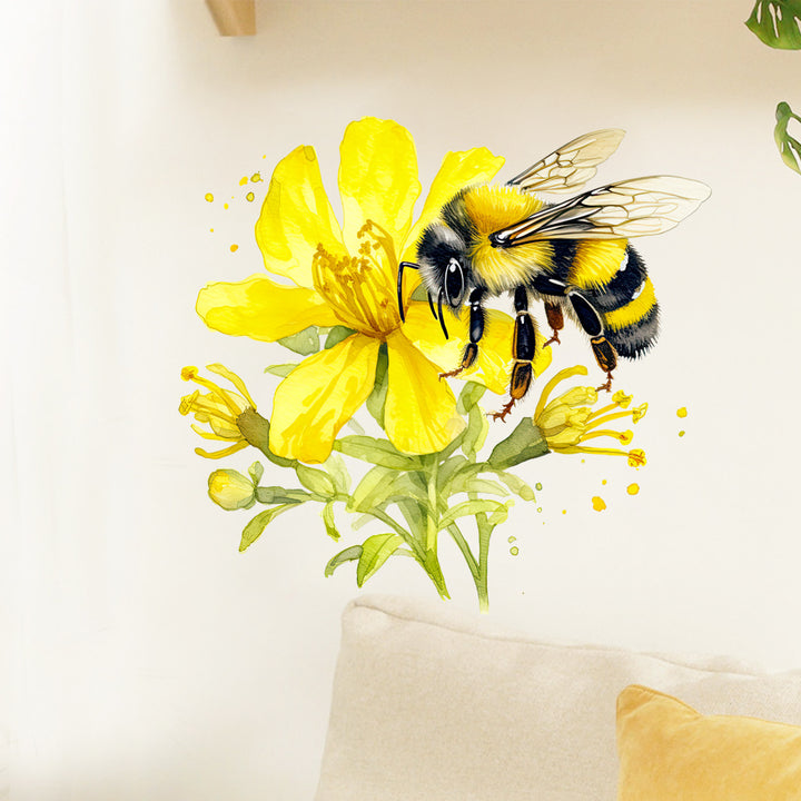 Little bee yellow flowers honey explosion indoor and outdoor decoration stickers fresh and ...