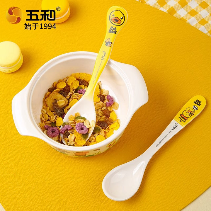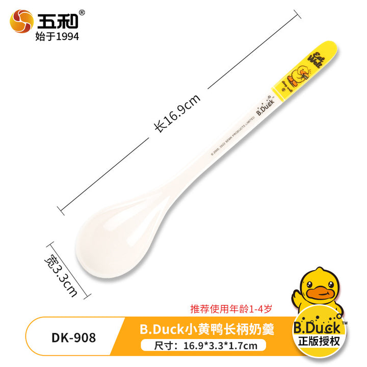 Little yellow duck children's spoon baby self-feeding spoon cartoon child eating spoon household drinking spoon long handle spoon