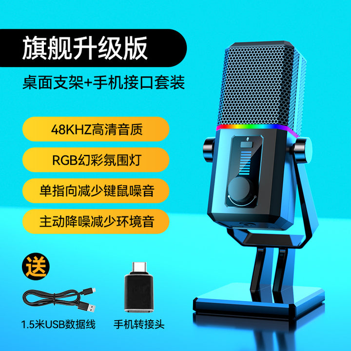 Live microphone Computer desktop game dedicated noise reduction microphone Conference online class e-sports USB recording capacitor microphone