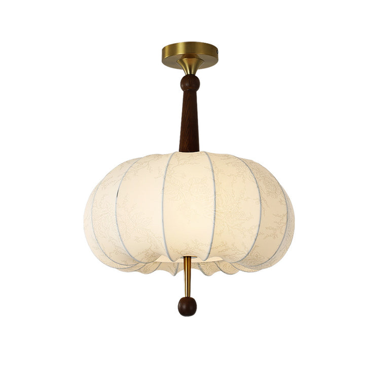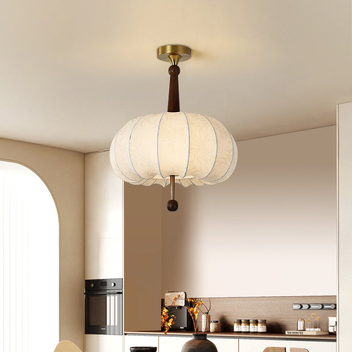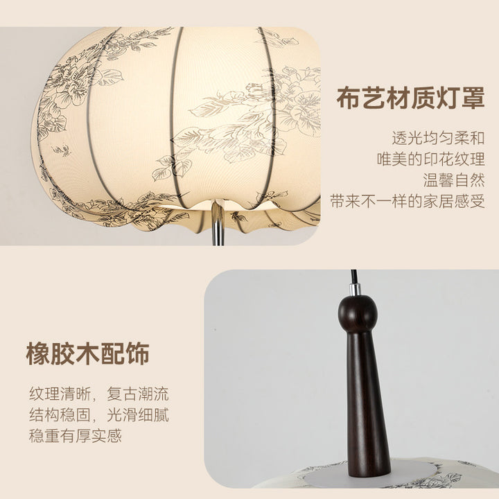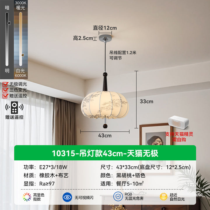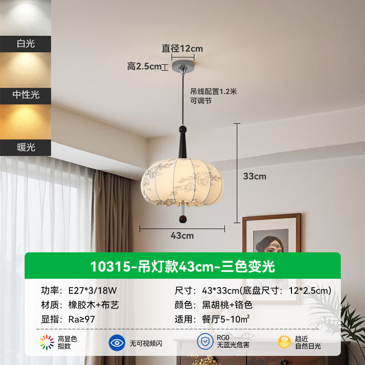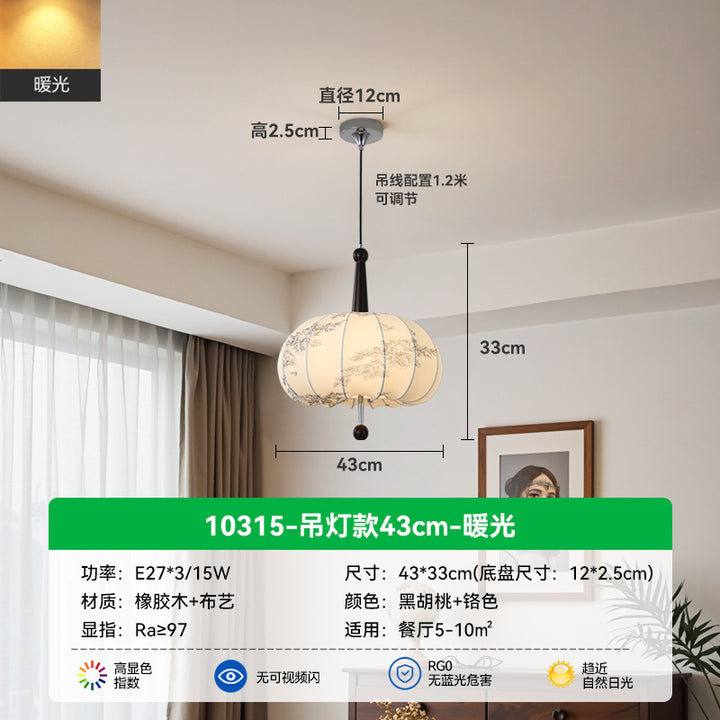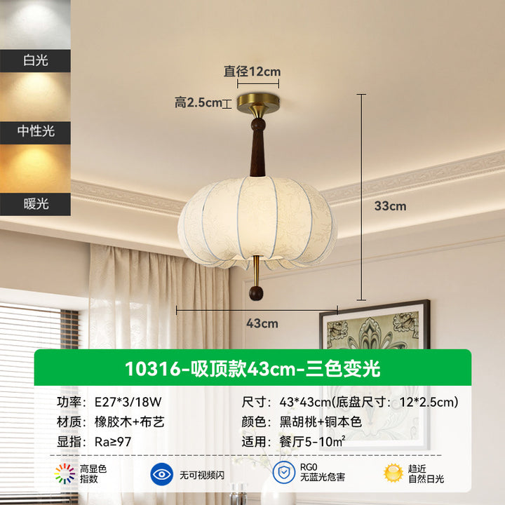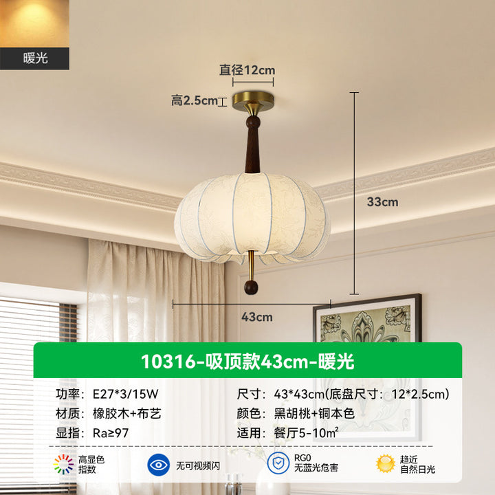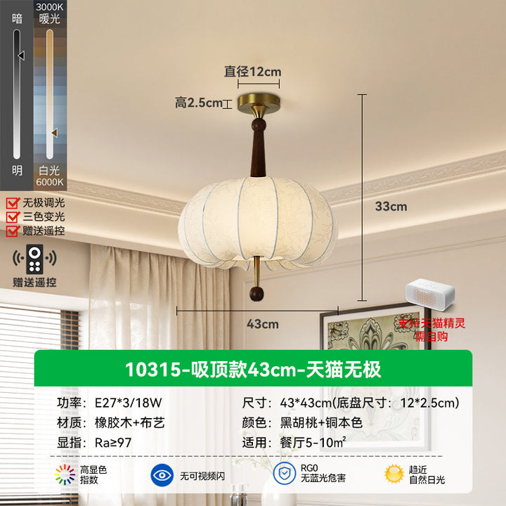 Living Room Ceiling Light Solid Wood Fabric Pattern Fuzhong Ancient Wind Wabi Sansan Wind Dining Room Study Tea Room Bedroom Chandelier E