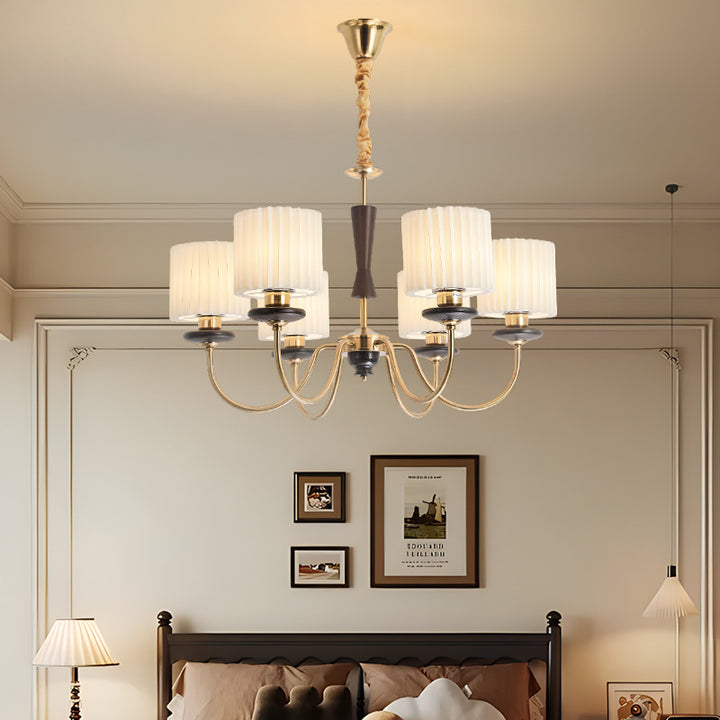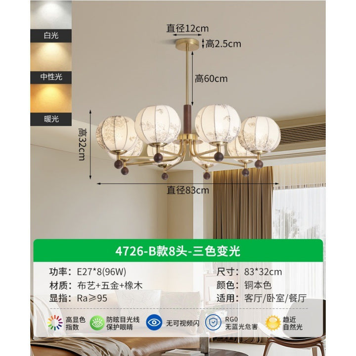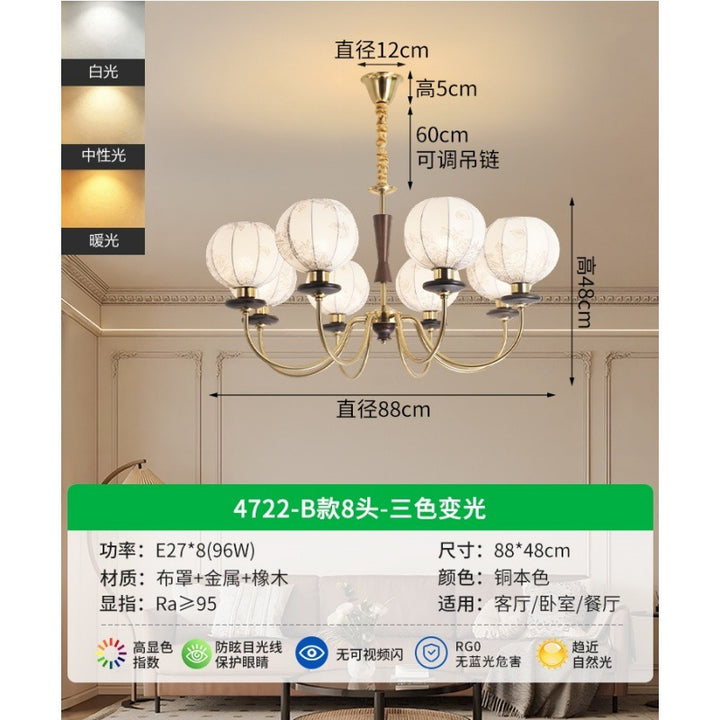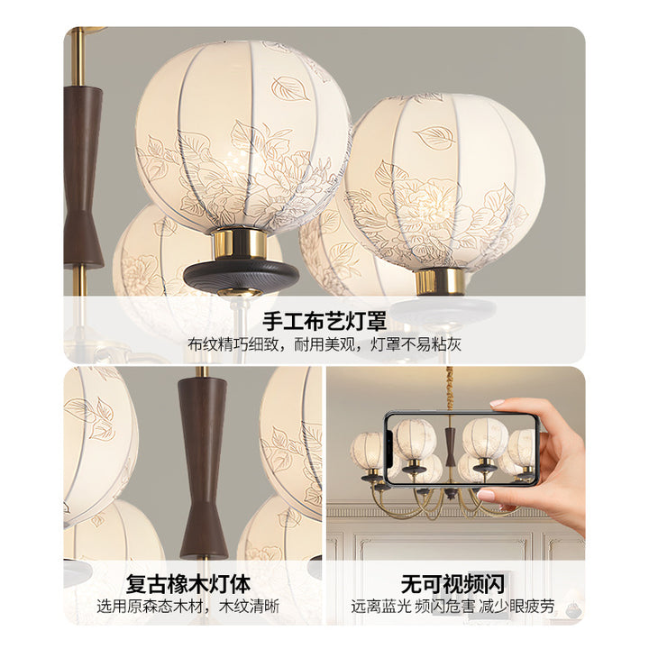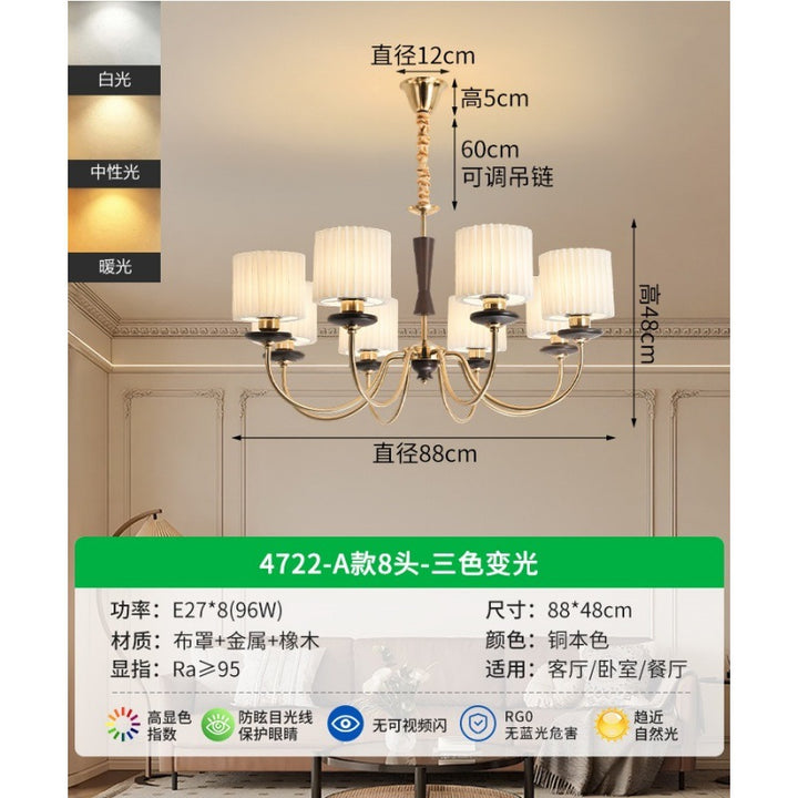 Living room chandelier French Nanyang retro style new modern simple solid wood fabric pattern hall lamp E