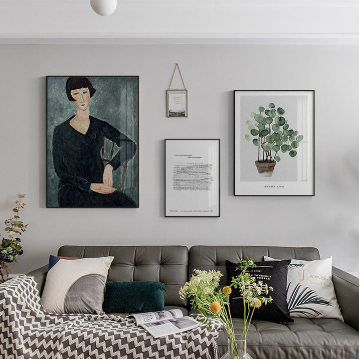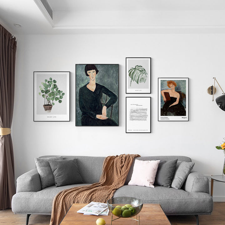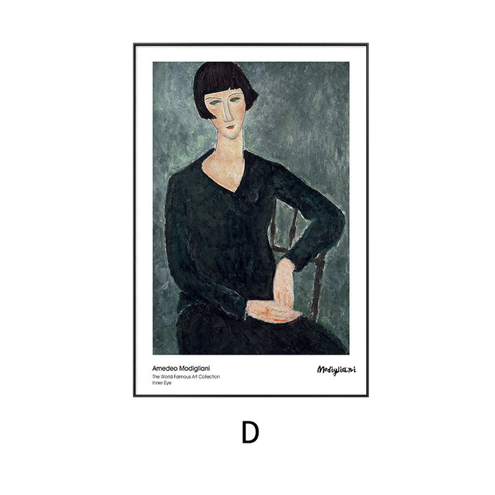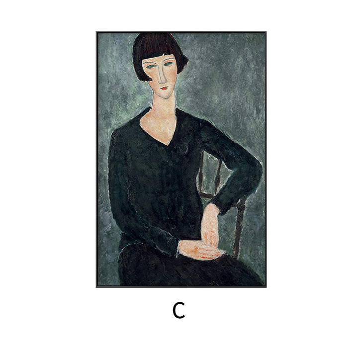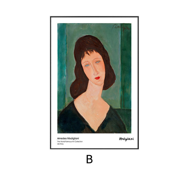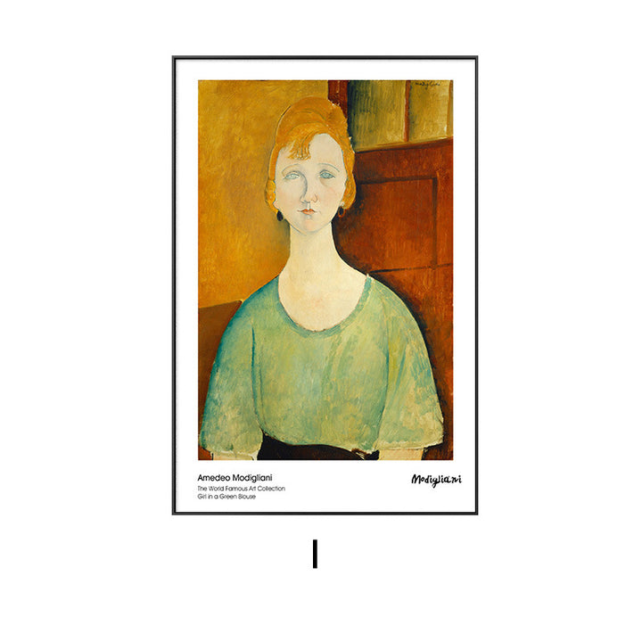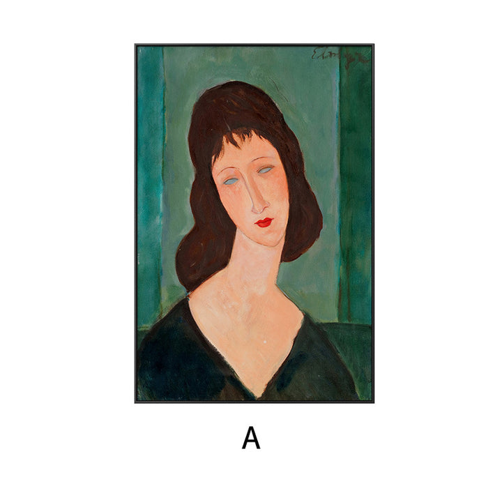 Living room decorative painting green retro Modigliani Nordic shoe cabinet above the entrance bedroom bedside wall painting