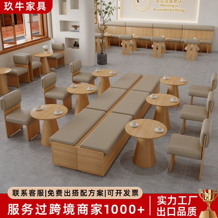 Log milk tea shop coffee shop table and chair combination snack drink shop against the wall card seat sofa negotiation area leisure table and chair