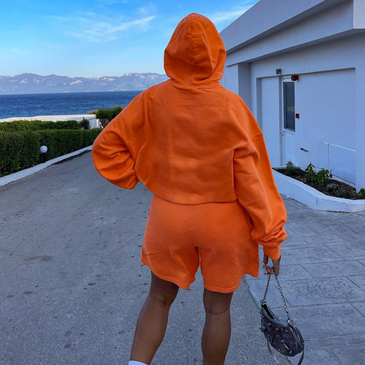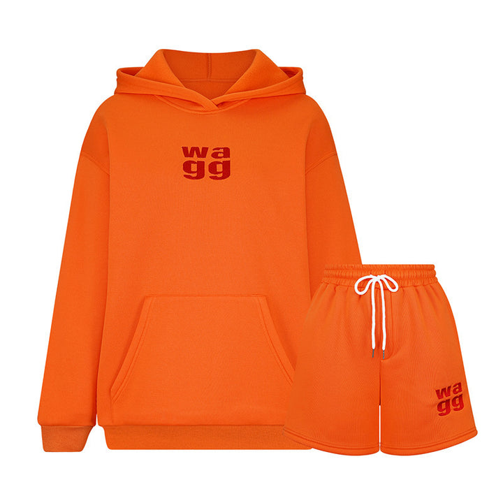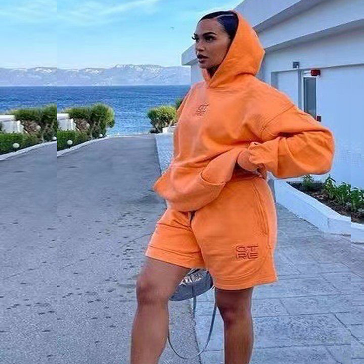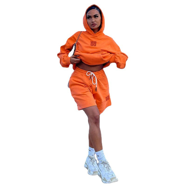 LOGO embroidered hooded sweater shorts two-piece set women's European and American autumn new sports fashion sweater shorts set