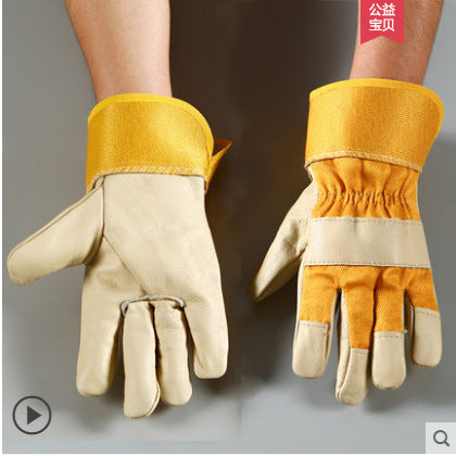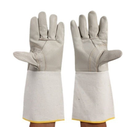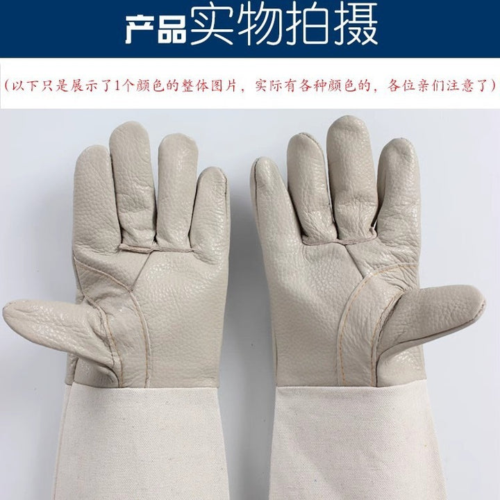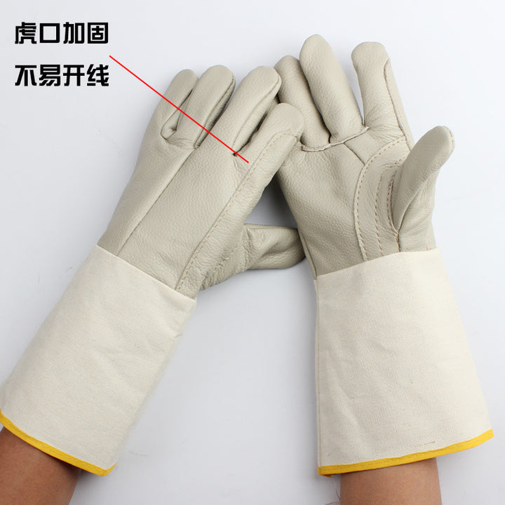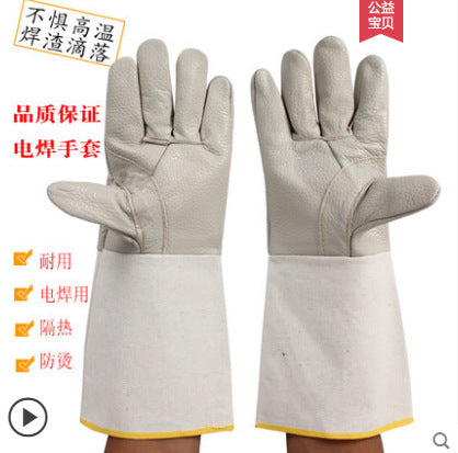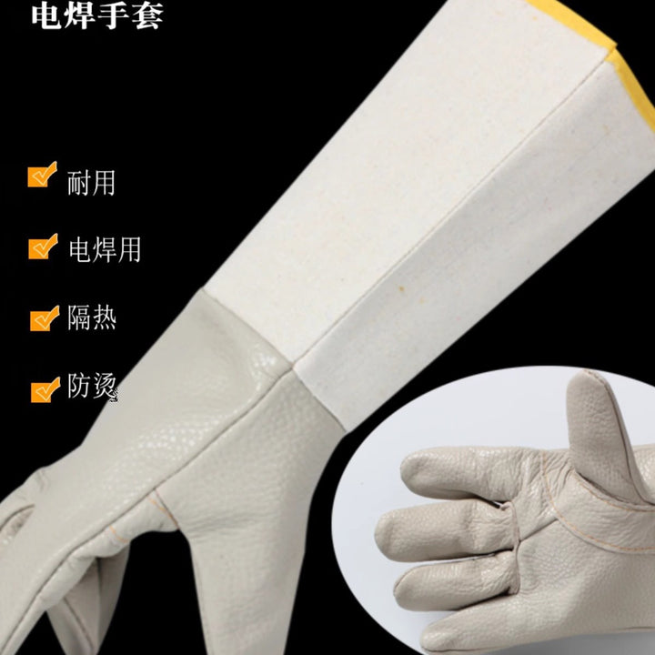 Long first-layer cowhide canvas sleeve electric welding gloves wear-resistant welder welding durable high temperature handling heat insulation gloves