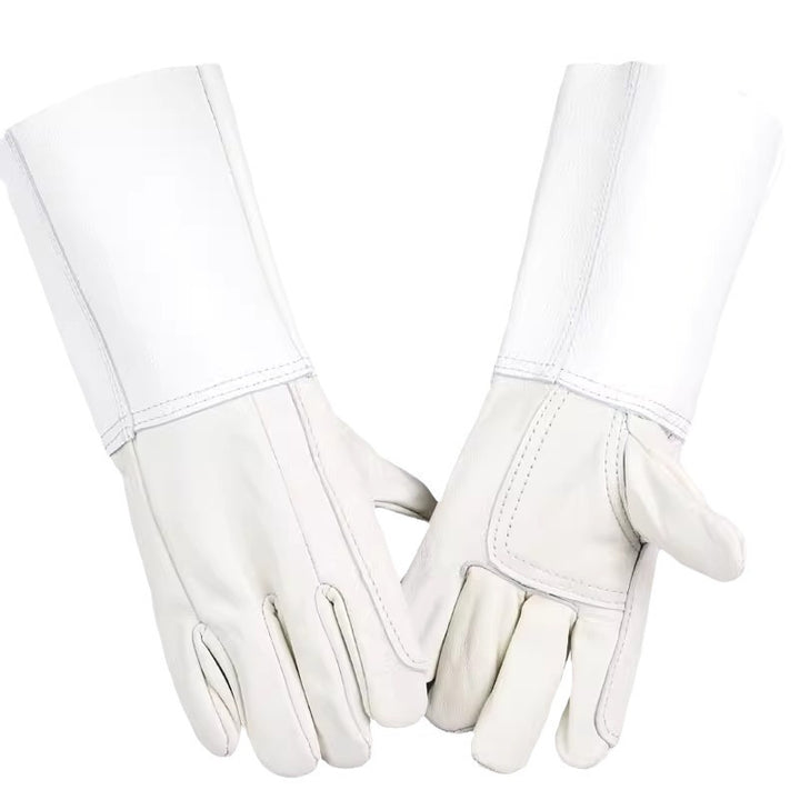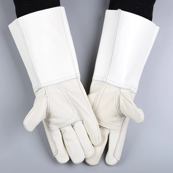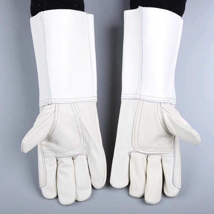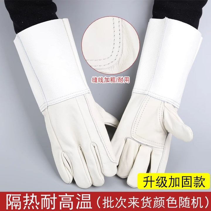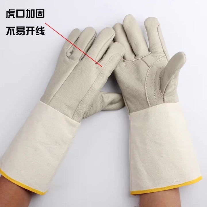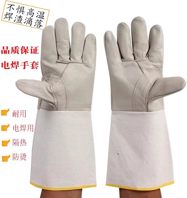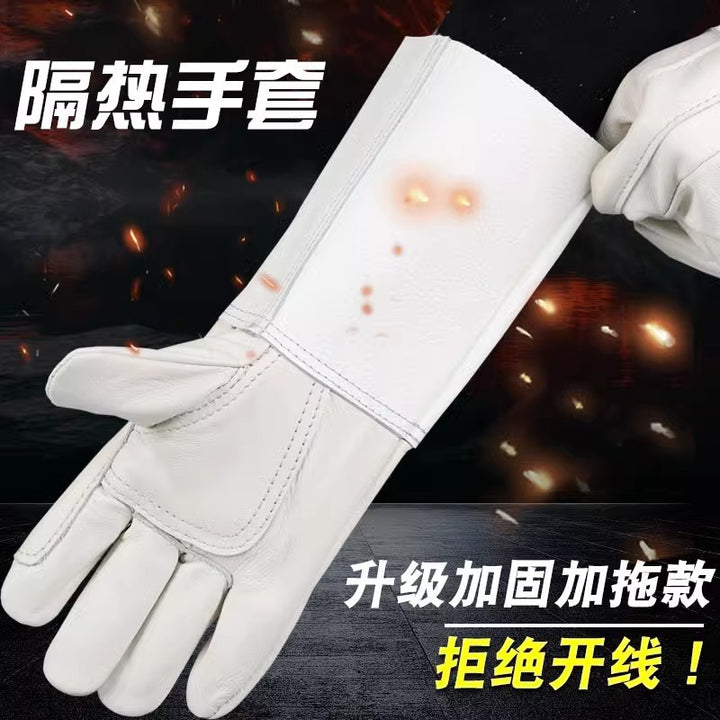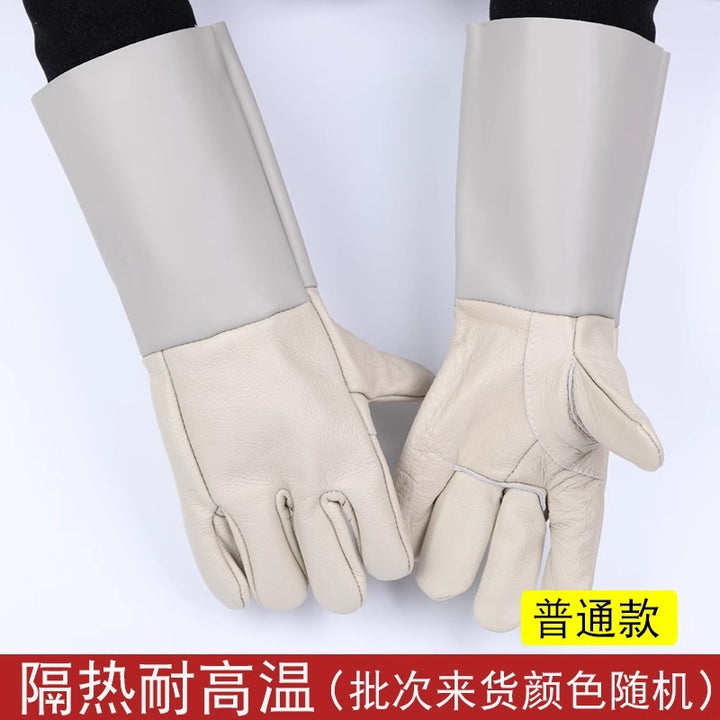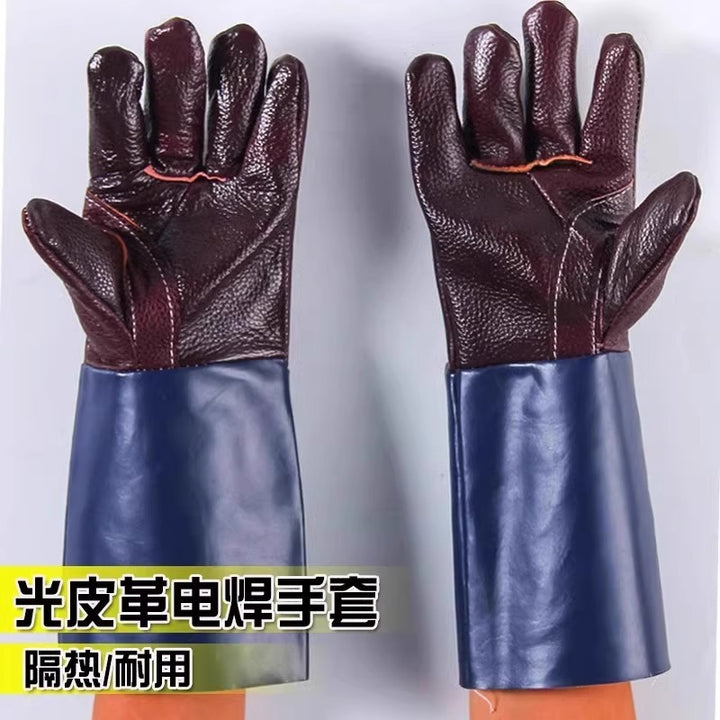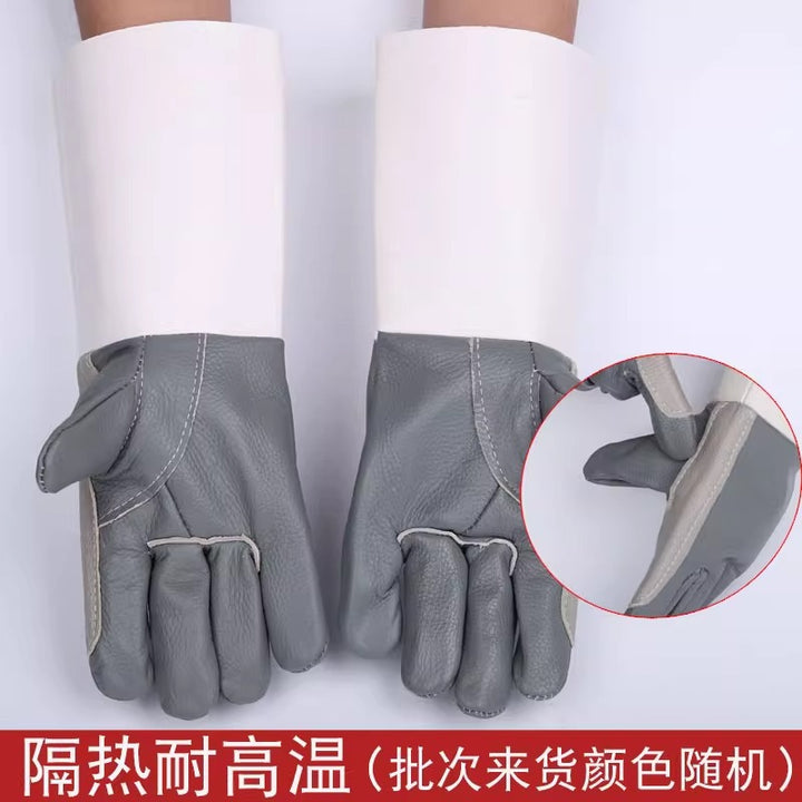 Long first-layer cowhide electric welding gloves reinforced and thickened with anti-scalding, high temperature and stab-proof soft welder leather g...