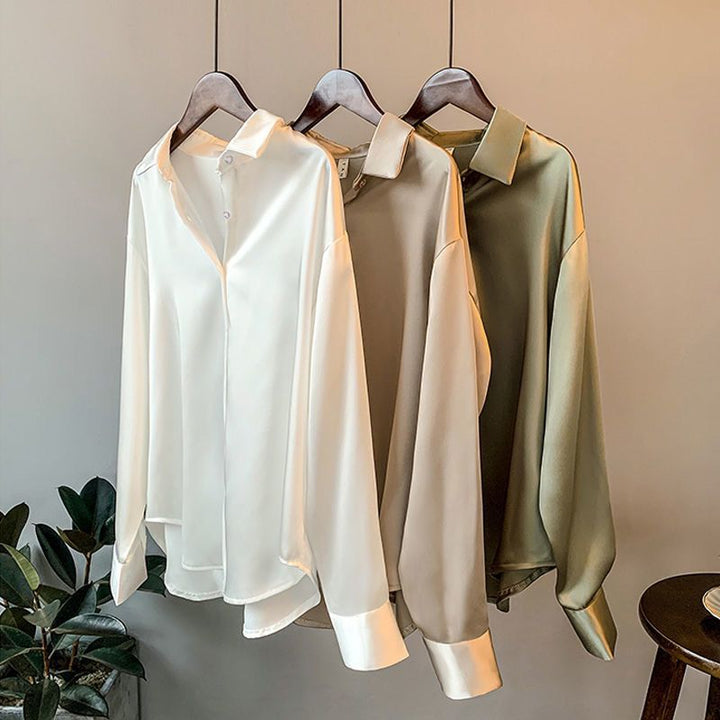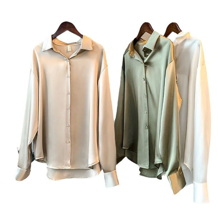 Long-sleeved satin shirt women's design sense niche 2024 spring and summer new loose drape outside Hong Kong style shirt top