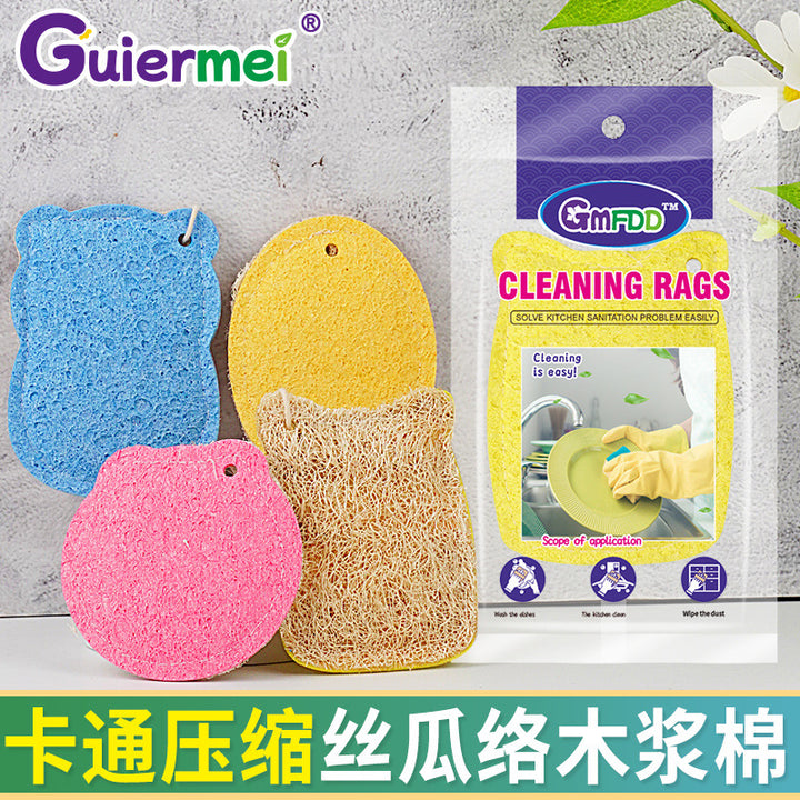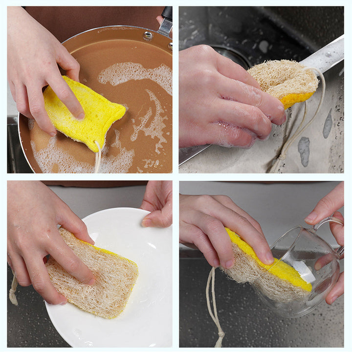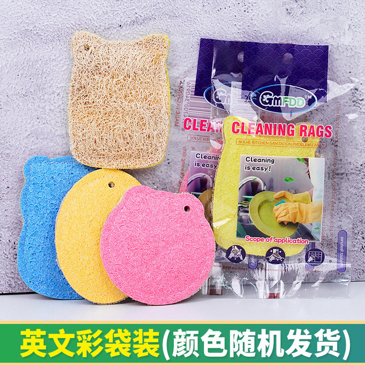Loofah pulp cotton dishwashing sponge non-stick oil double-sided cleaning rag kitchen washing pot brush artifact scouring cloth