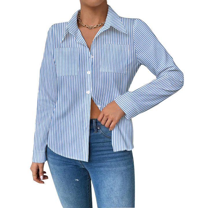 Look at the picture, contract labor and materials, custom striped long-sleeved shirts, women's European and American temperament shirts, cardigans,...