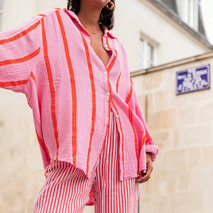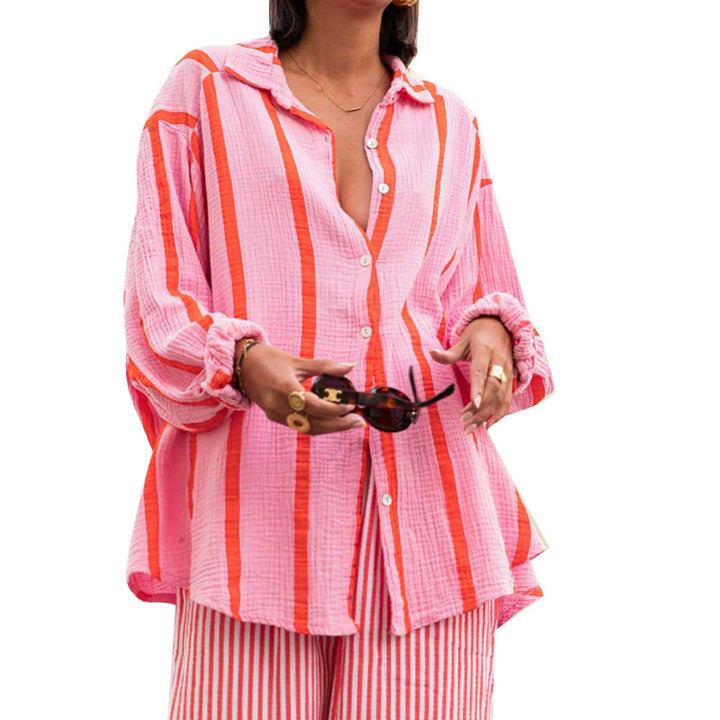 Looking at the picture, custom striped long-sleeved shirts, autumn loose shirts, cardigans, women's clothing, labor and materials, small batch proc...