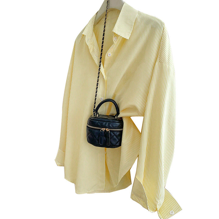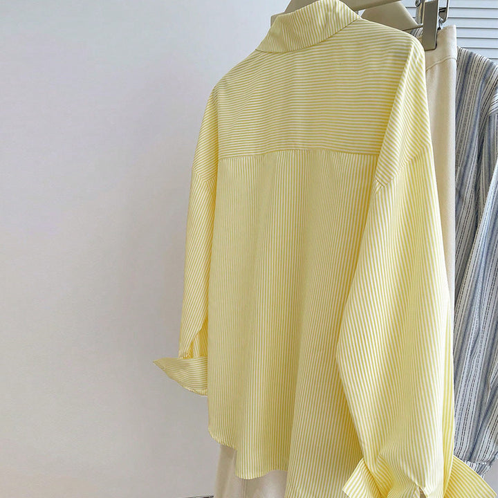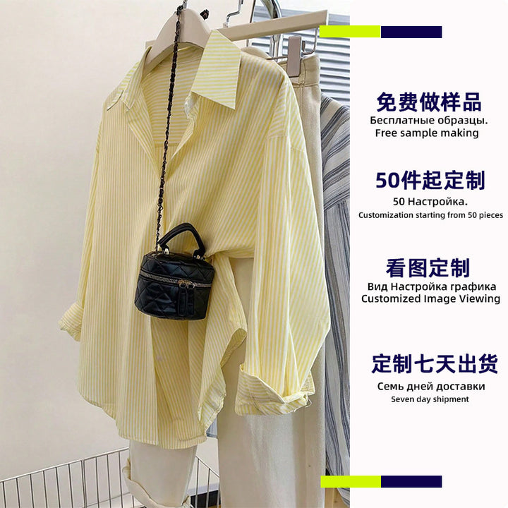 Looking at the picture, playing the board, customizing the striped shirt, European and American temperament, long-sleeved shirt, cardigan, women's...