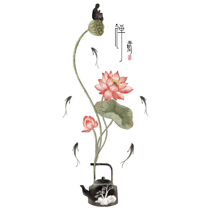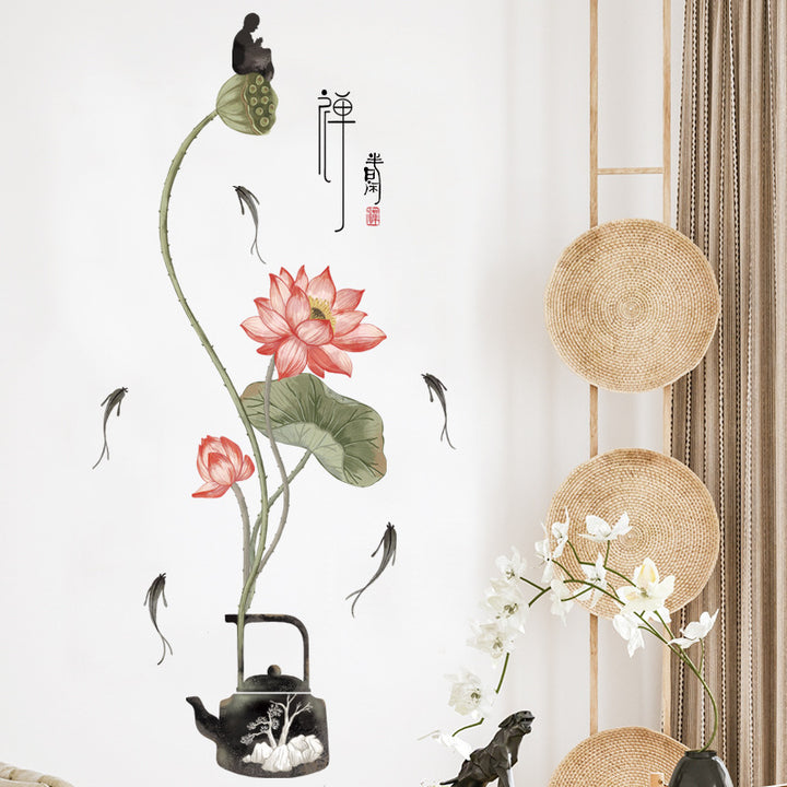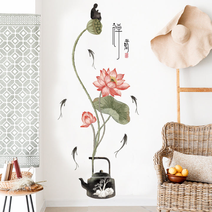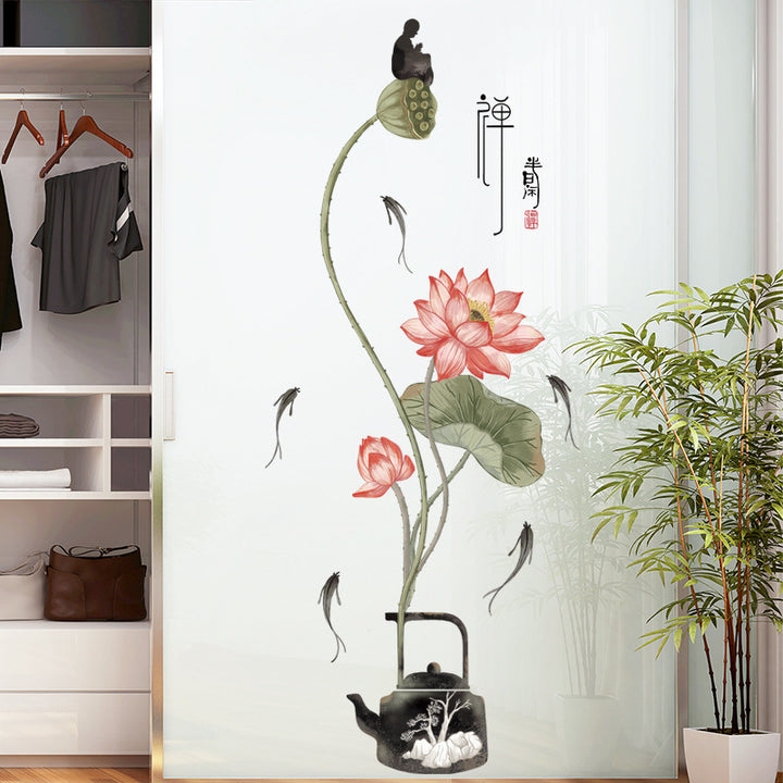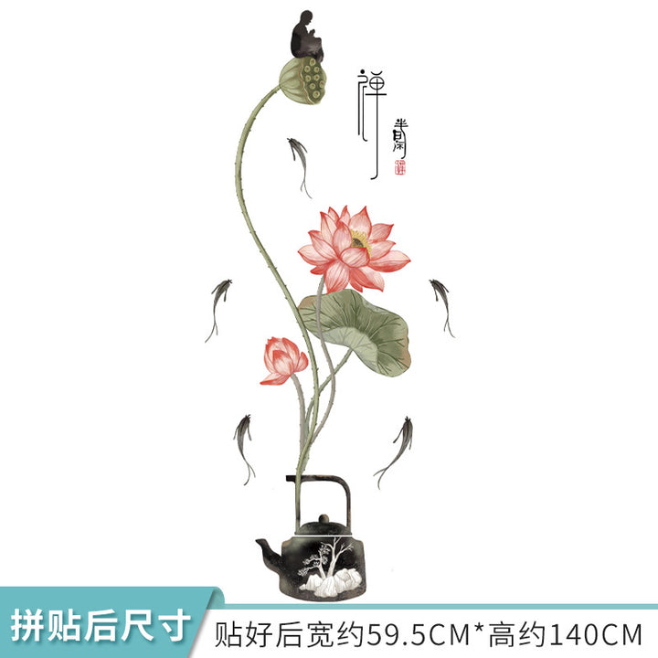 Lotus background decorative sticker plant flower Chinese style wall sticker more than every year butterfly dragonfly sticker, zen