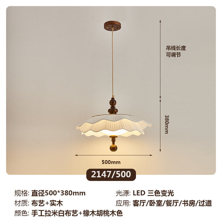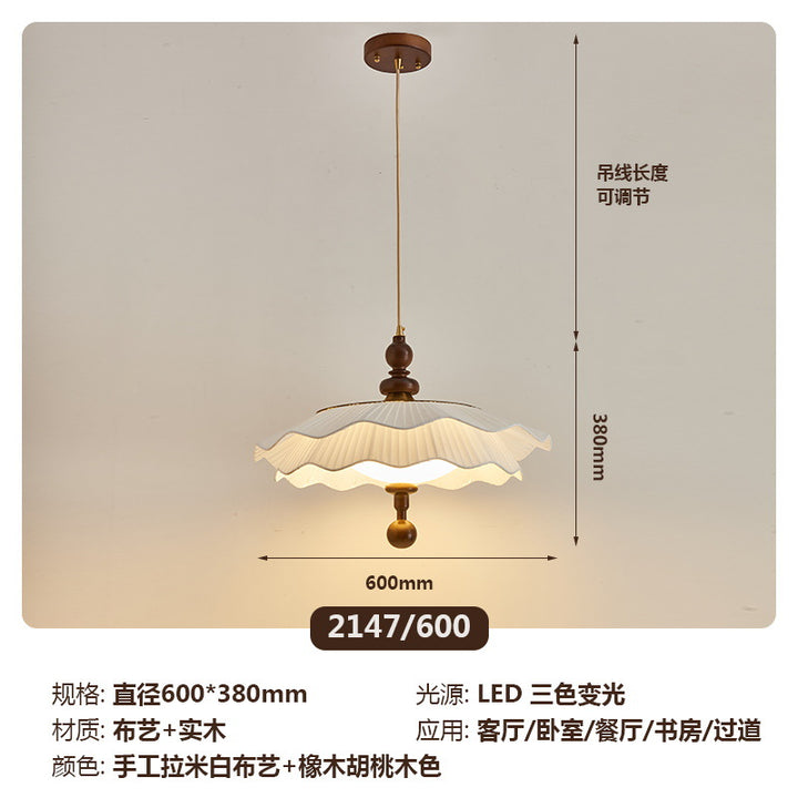 Lotus leaf French medieval fabric chandelier Nordic ins style designer modern fabric copper lamp bedroom atmosphere ceiling