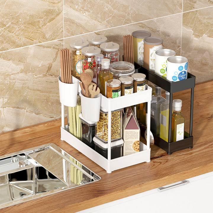 Lower Sink Shelf Kitchen Desktop Seasoning Rack Bathroom Cosmetics Storage Organizing Rack Multifunctional