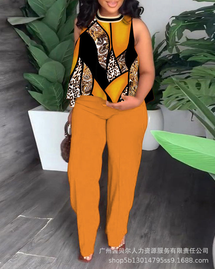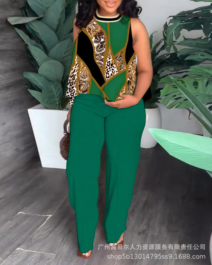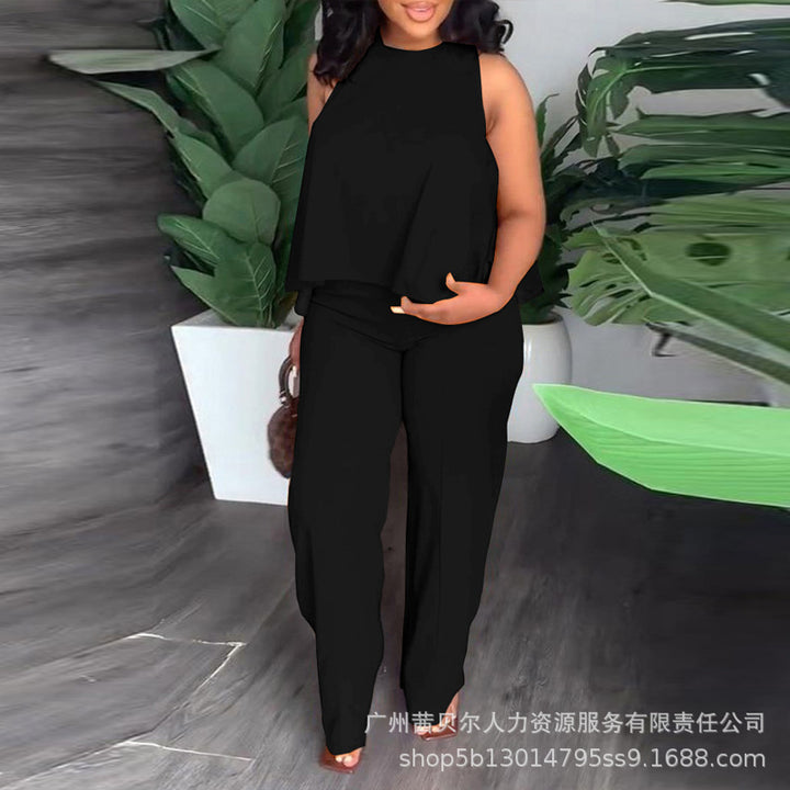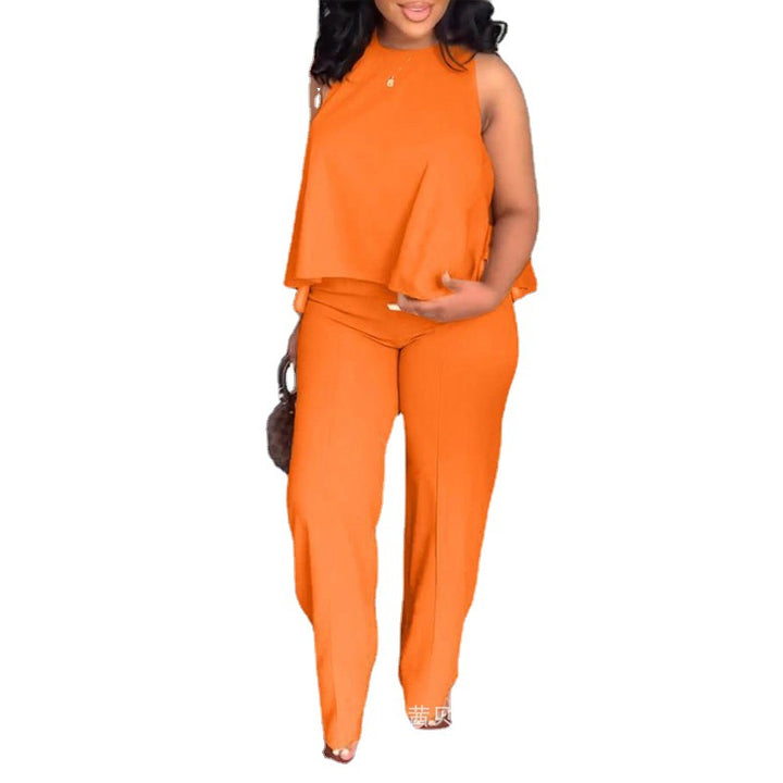 (LPU3501 series) 2023 women's new solid color sleeveless top and pants set, set