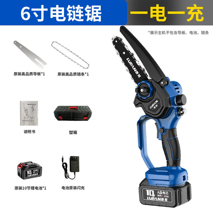 Luban 6-inch high-power lithium battery chain saw rechargeable household portable garden logging saw single hand saw wholesale