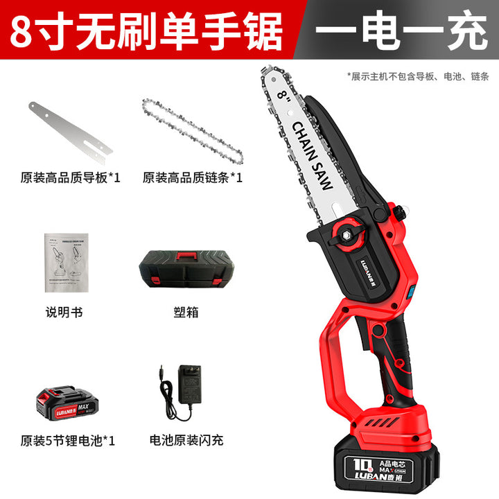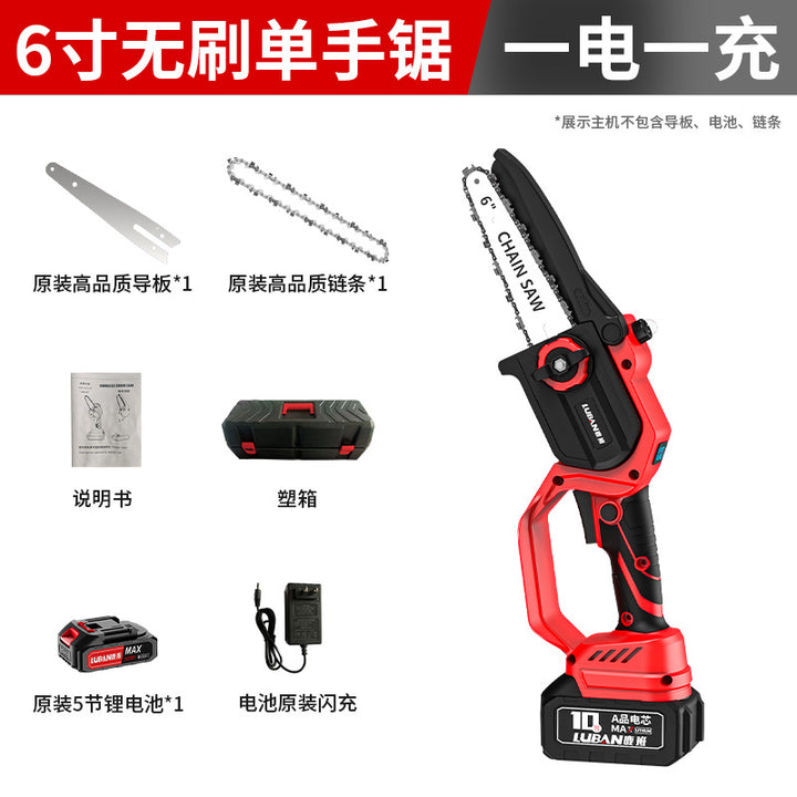 Luban Brushless Lithium Electric Saw Portable Logging Pruning Saw Rechargeable Household Electric Chainsaw Mini Saw Cross-border Special