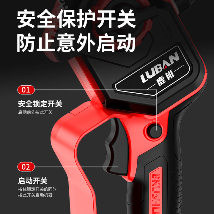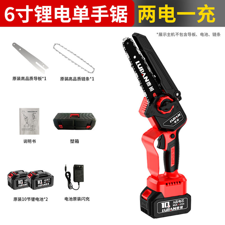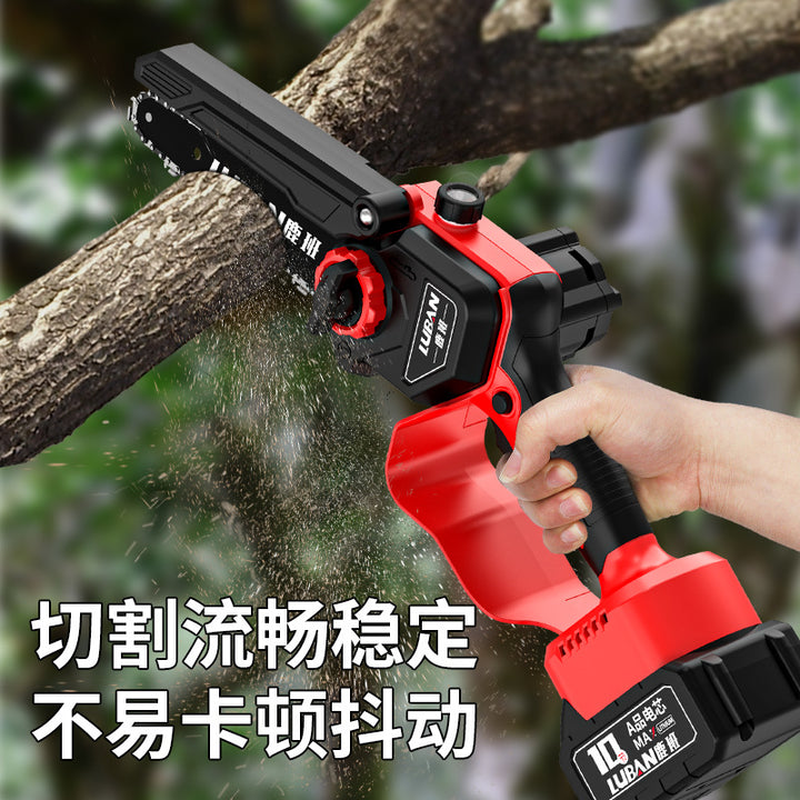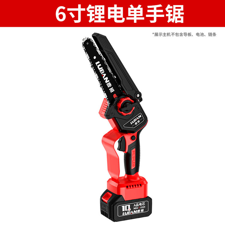 Luban Lithium Electric Saw Portable Logging Pruning Saw Rechargeable Household Electric Chainsaw Mini High Branch Saw Cross-border Special