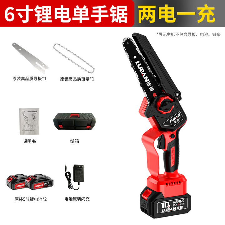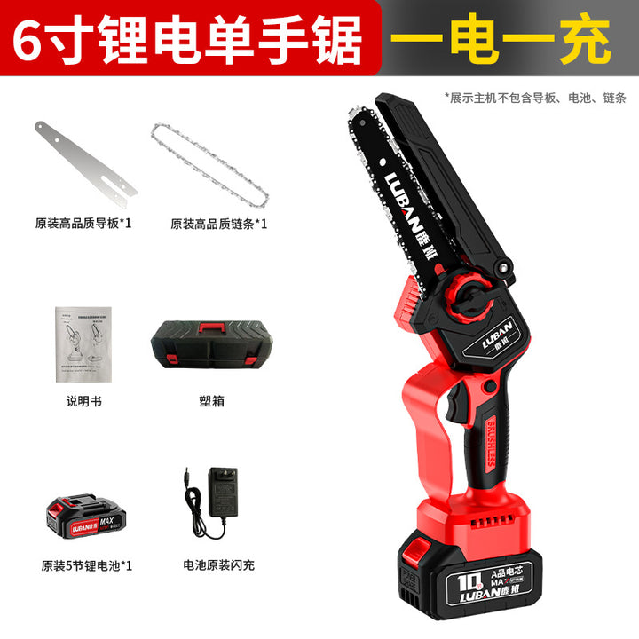 Luban Lithium Electric Saw Portable Logging Pruning Saw Rechargeable Household Electric Chainsaw Mini High Branch Saw Cross-border Special