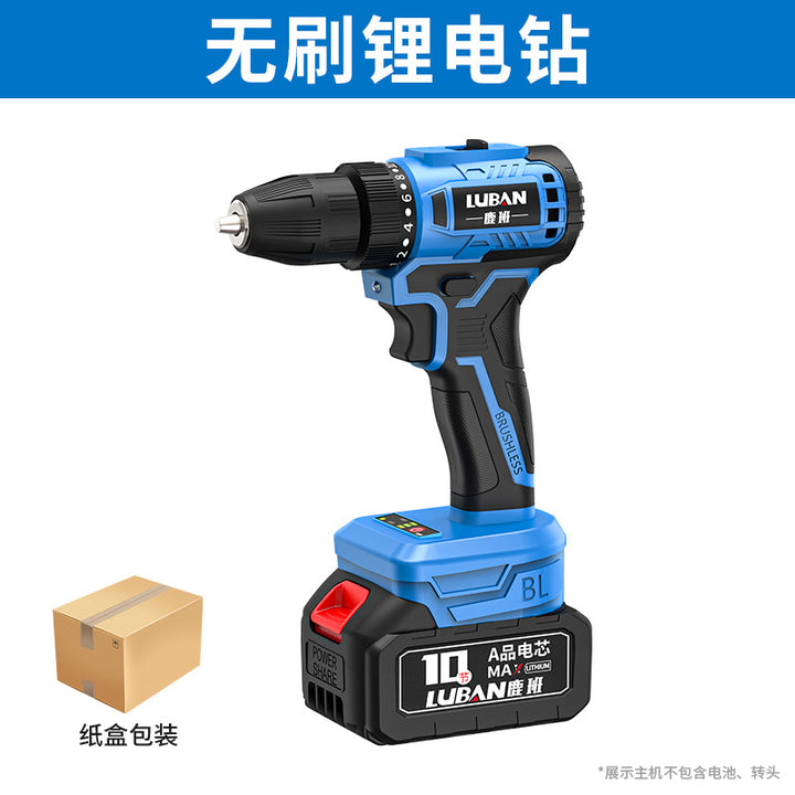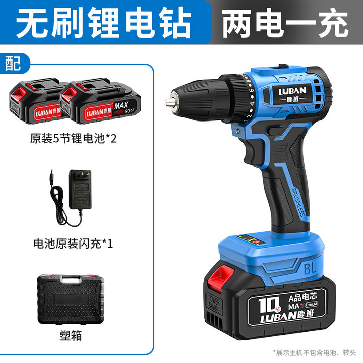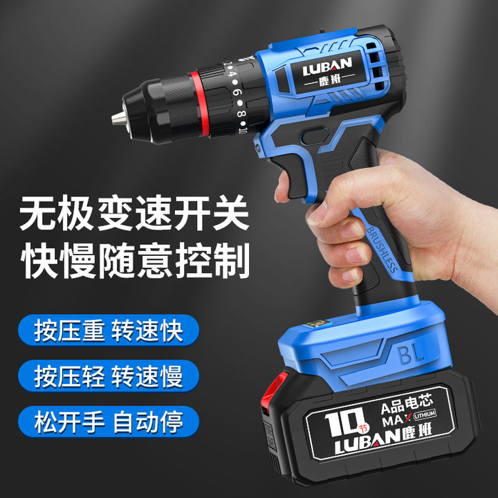Luban Mini Household Rechargeable Brushless Variable Speed Lithium Battery Impact Hand Drill Electric Screwdriver Cross-border Wholesale