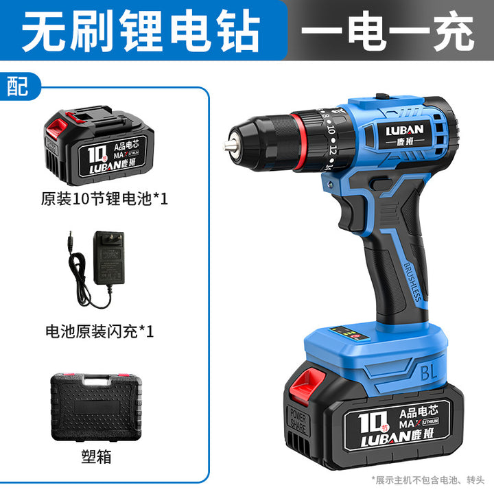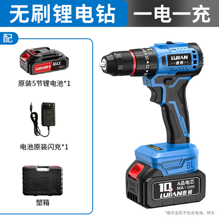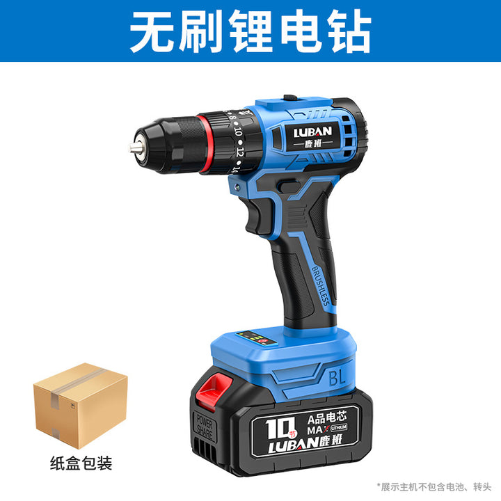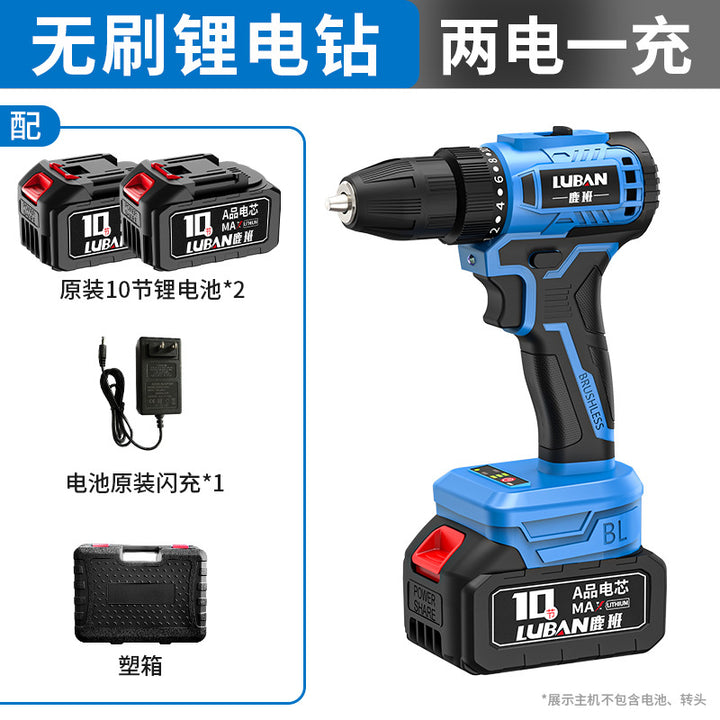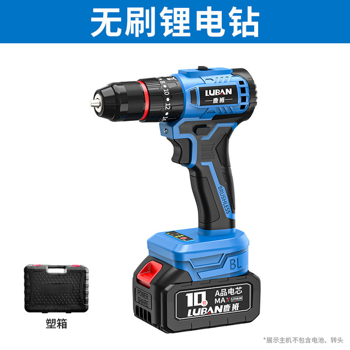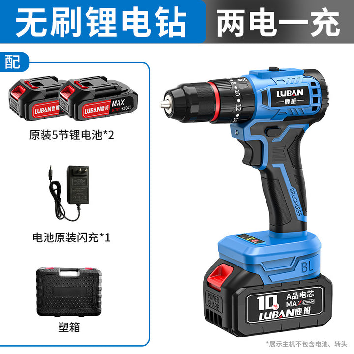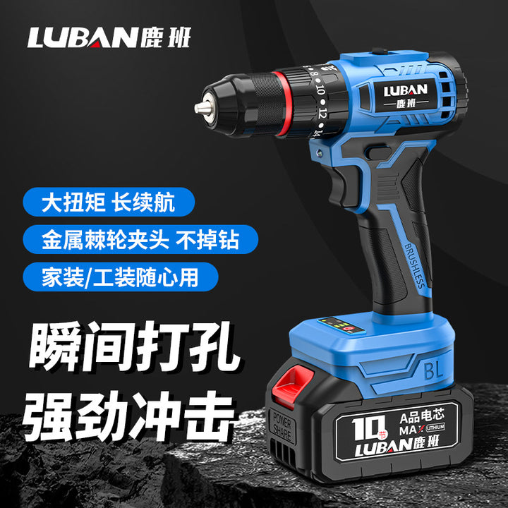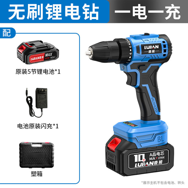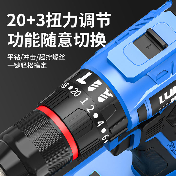 Luban Mini Household Rechargeable Brushless Variable Speed Lithium Battery Impact Hand Drill Electric Screwdriver Cross-border Wholesale