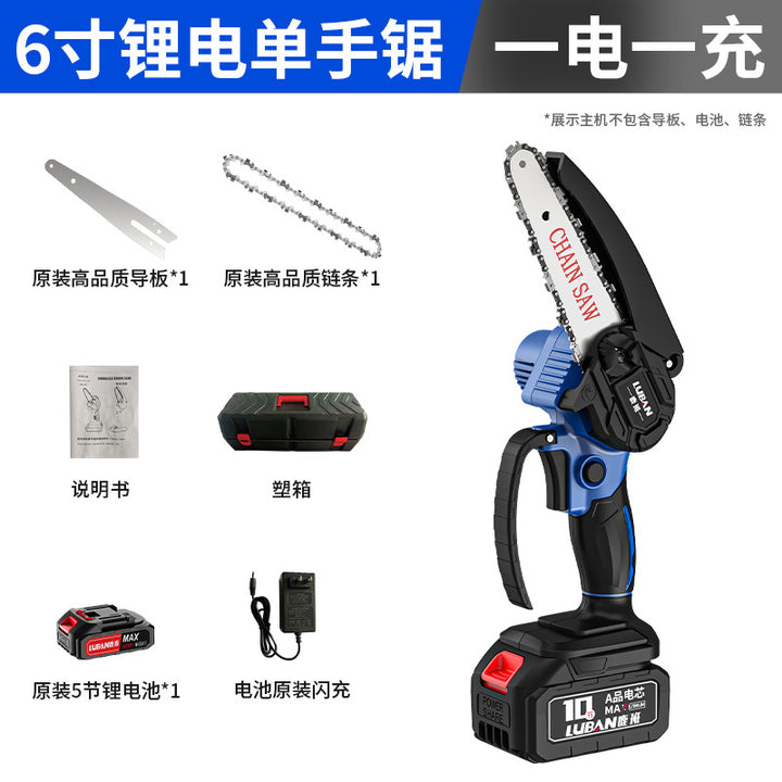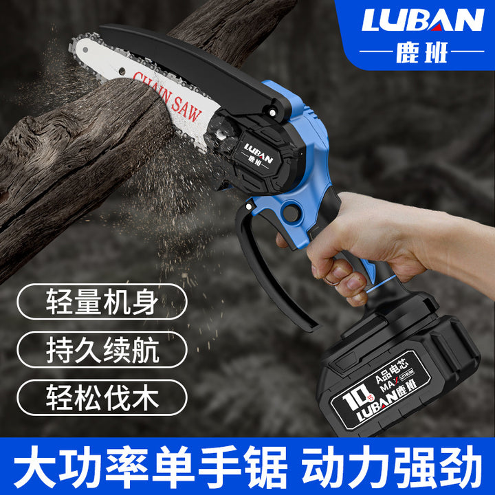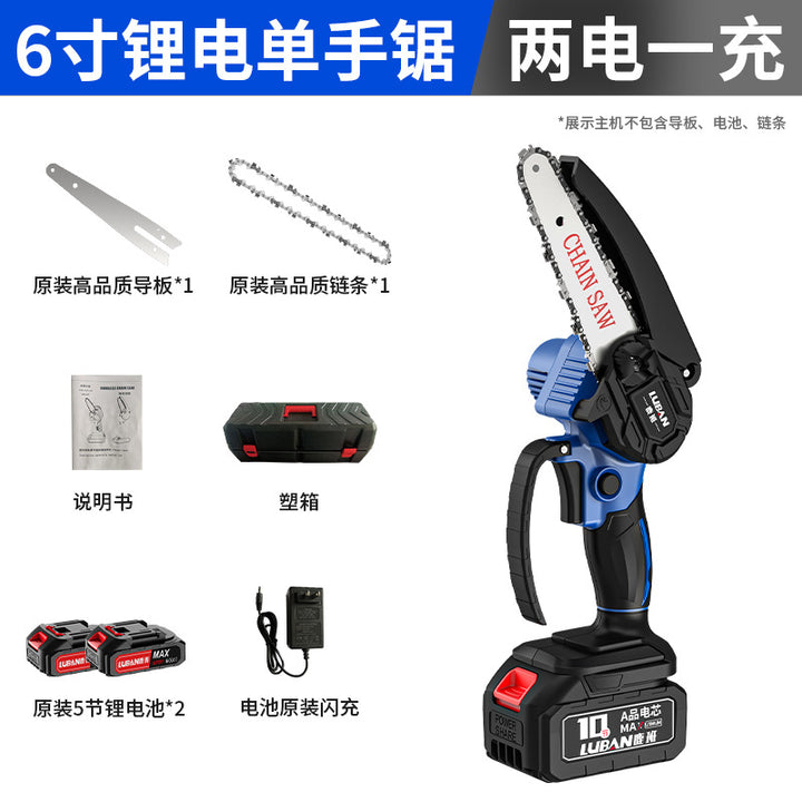 Luban Mini Lithium Electric Saw Rechargeable Household Electric Chainsaw Portable Logging Pruning Saw Cross-border Wholesale Single Hand Saw