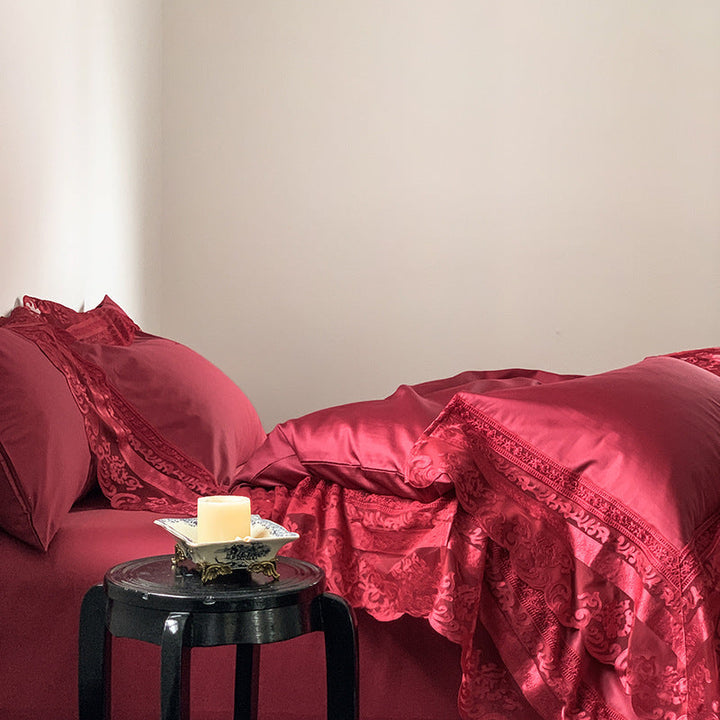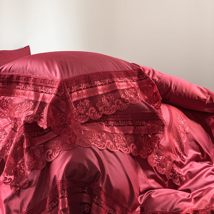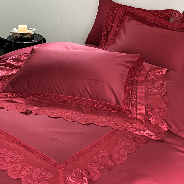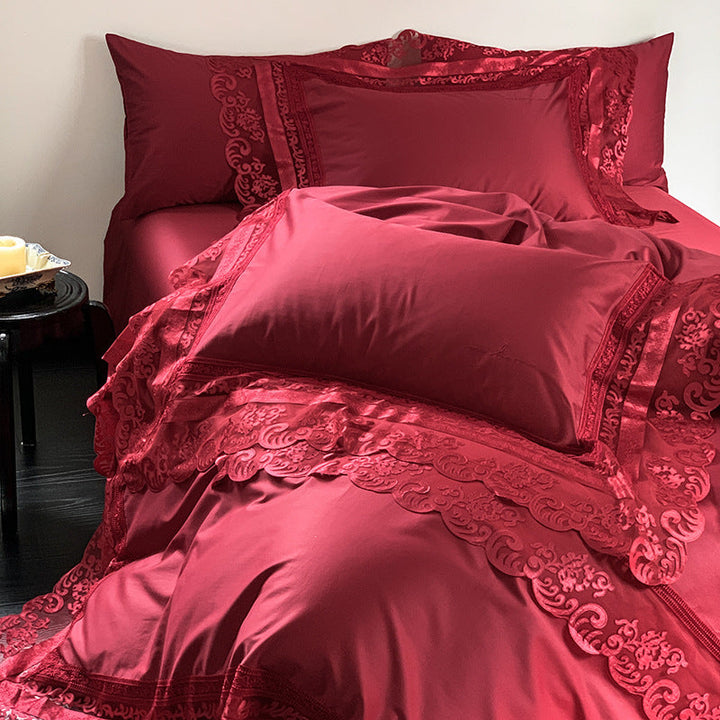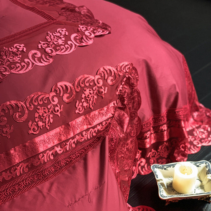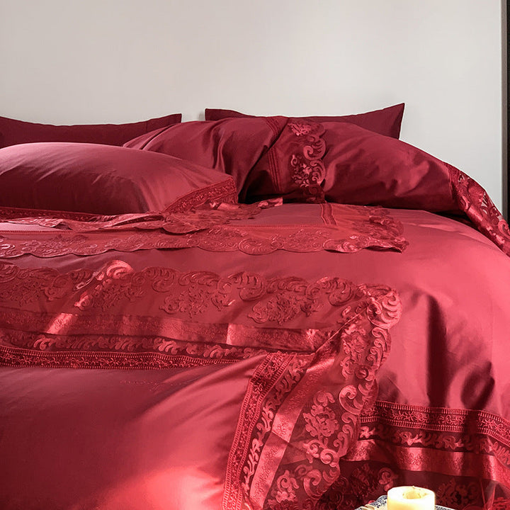 Luxury European and American style 100 cotton satin wedding four-piece set hollow edge wedding bedding