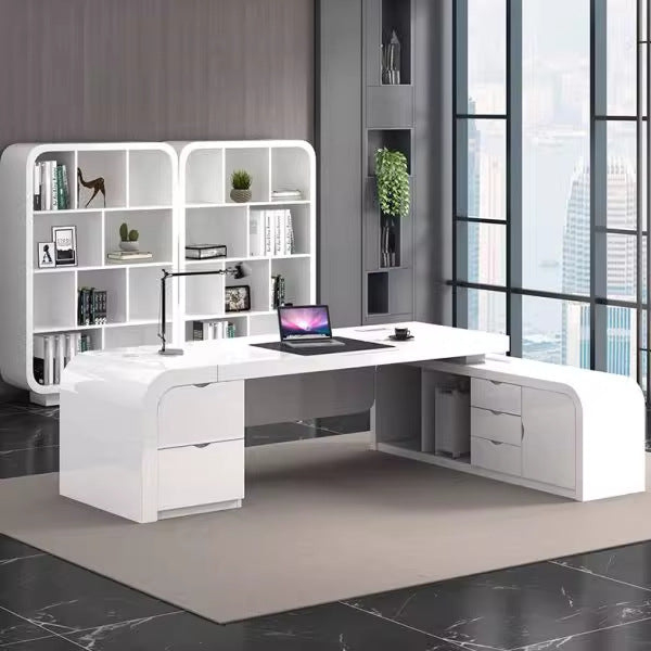 Luxury Modern L-Shape CEO Boss Desk Office Furniture Table Set Manager Executive Desk