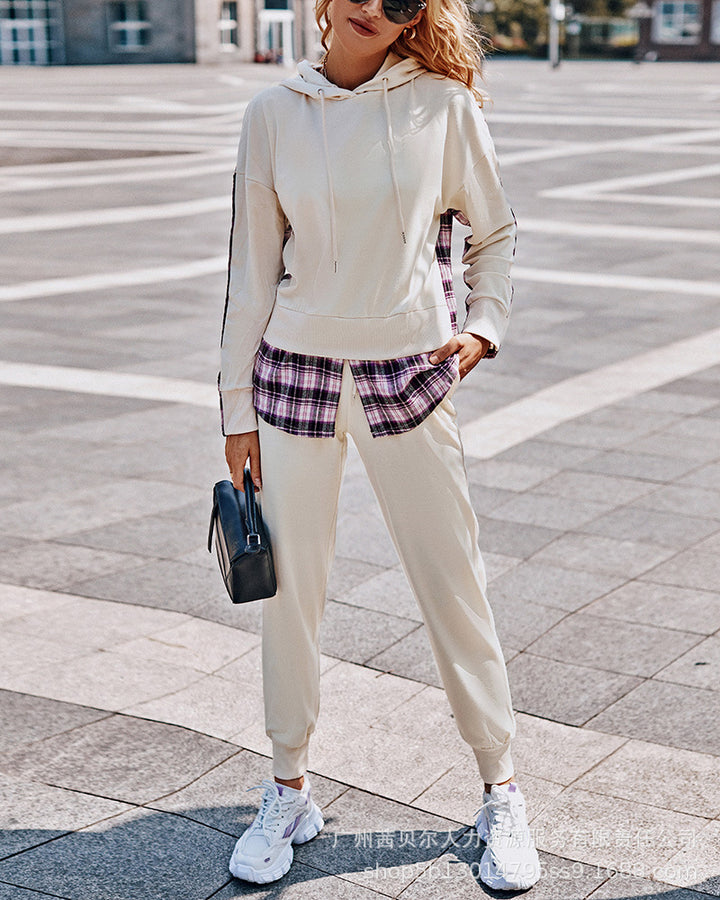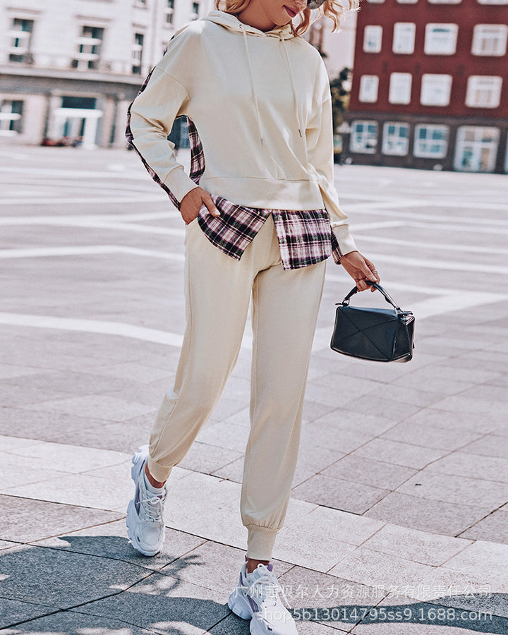 LZQ4895 new 2024 color plaid splicing casual set 2-piece set
