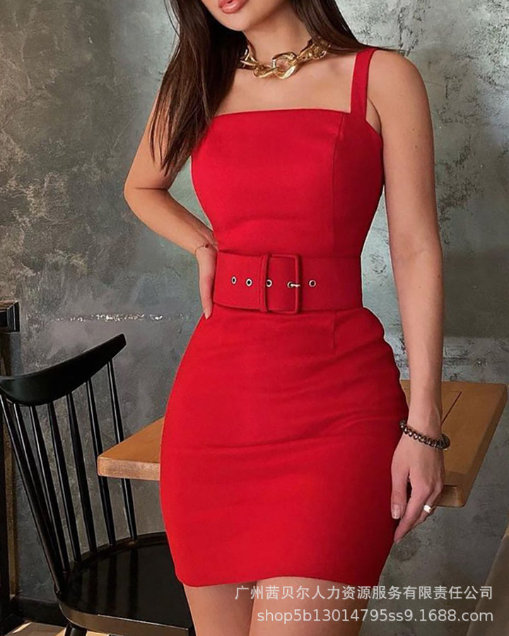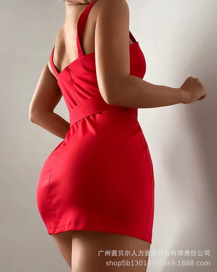 (LZR10436) 2022 European and American new red suspender tight skirt - with belt