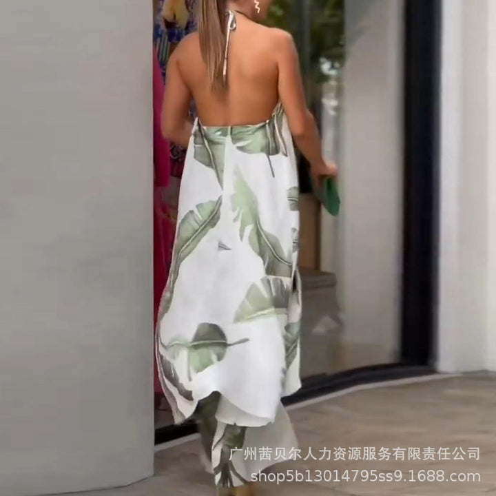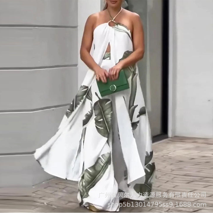 LZR16309 printed sexy long neck top set casual straight pants set is not positioned