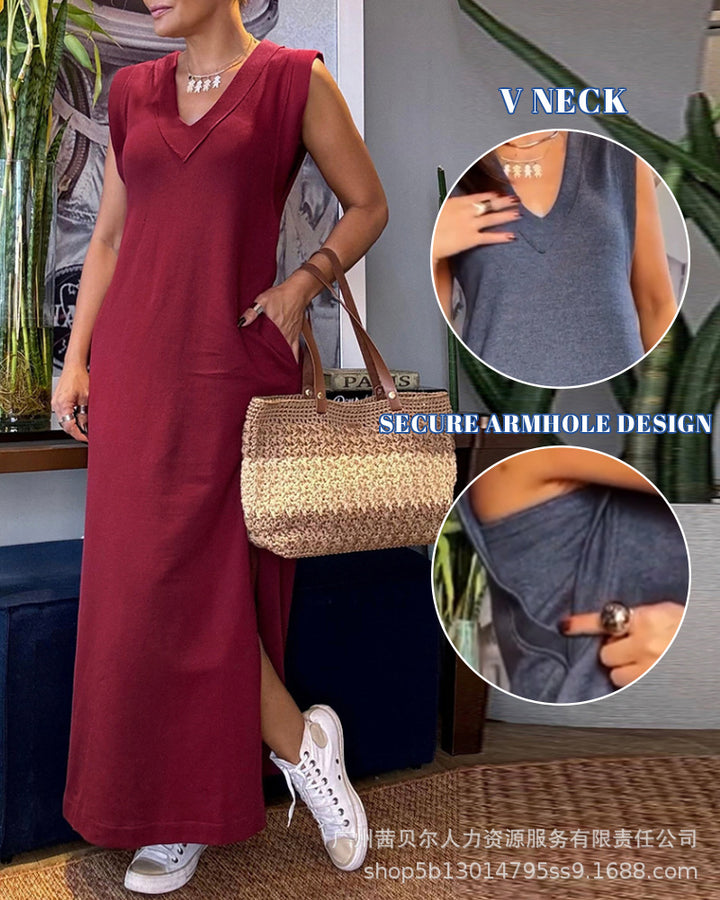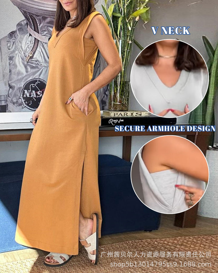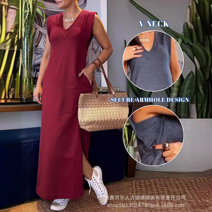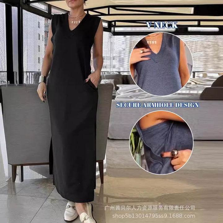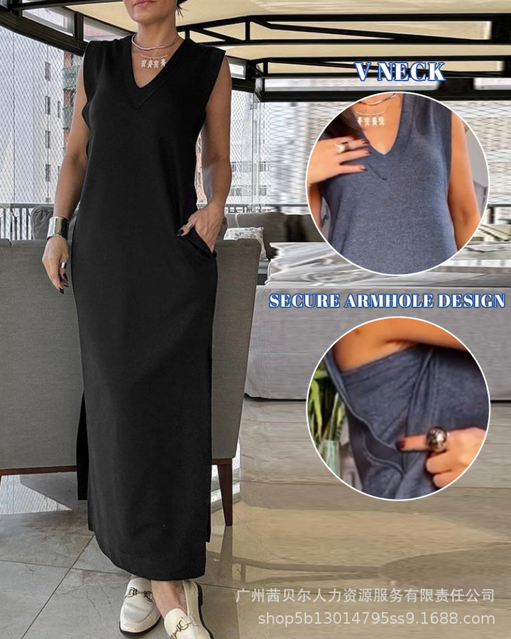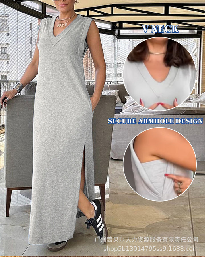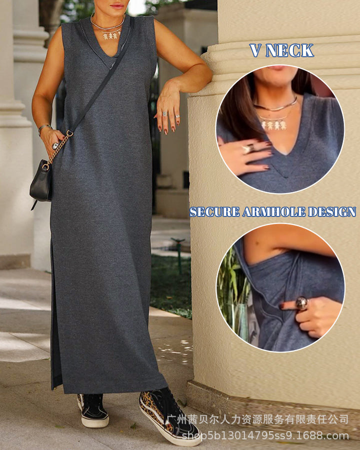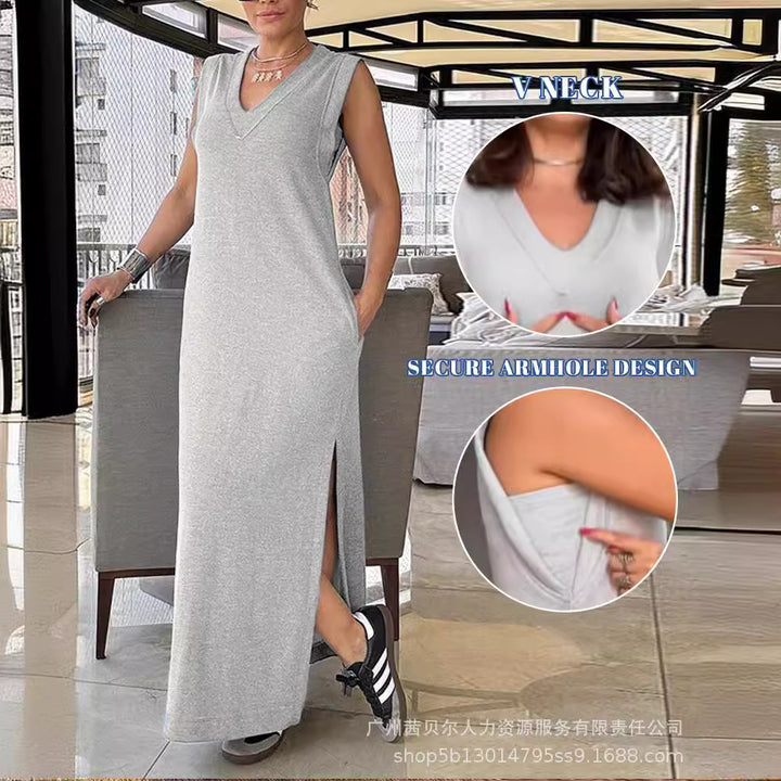 LZR18368 European and American new light gray rough edge V-neck test split fork long casual skirt