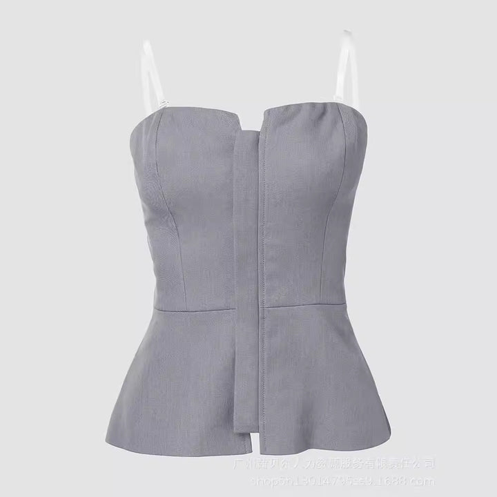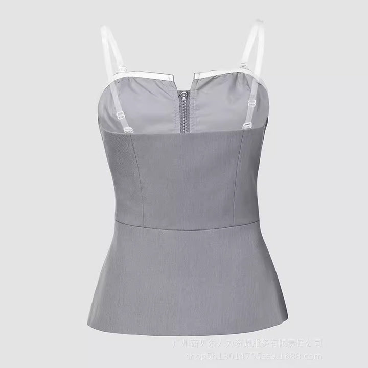 LZR18792 European and American light gray sexy tube top waist cardigan commuter top