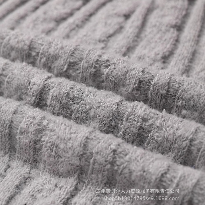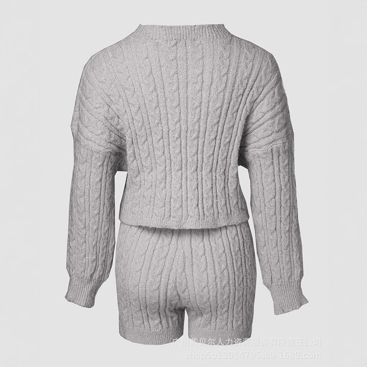 LZR18924 women's clothing light gray thick needle jacquard short loose pullover knitted sweater shorts set