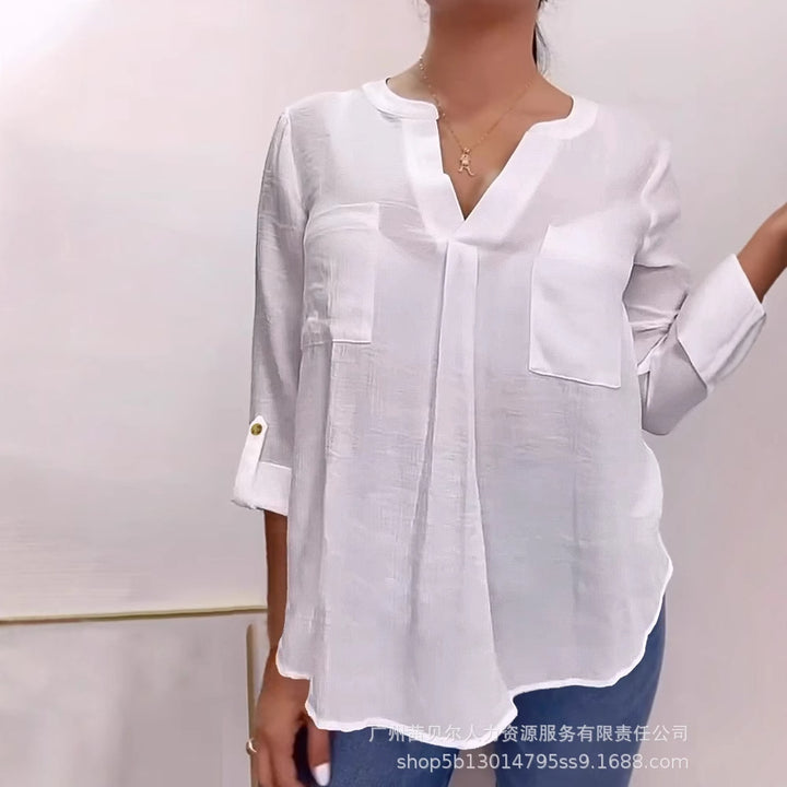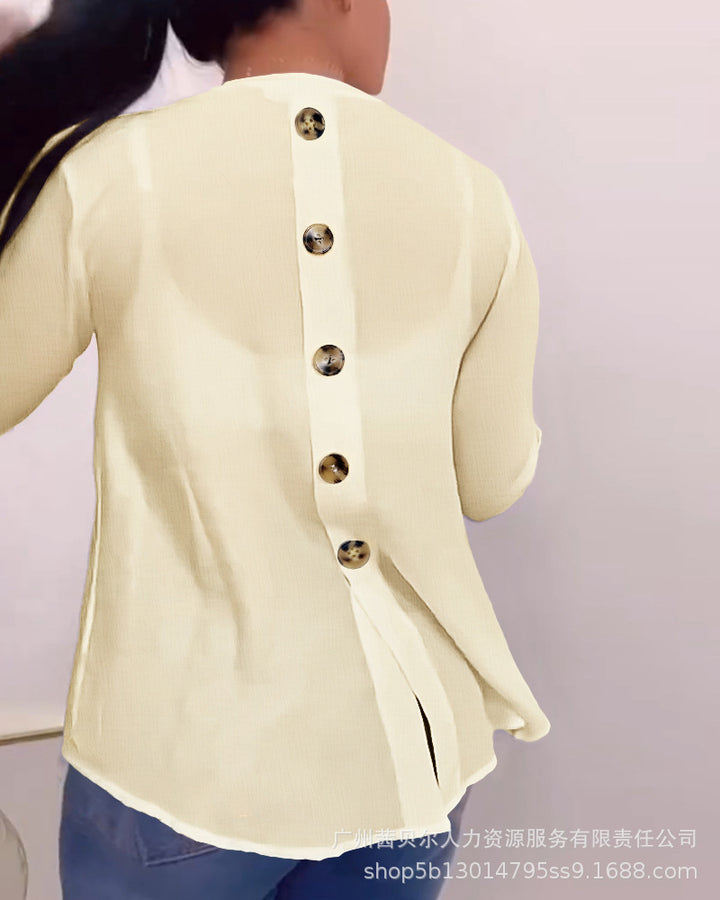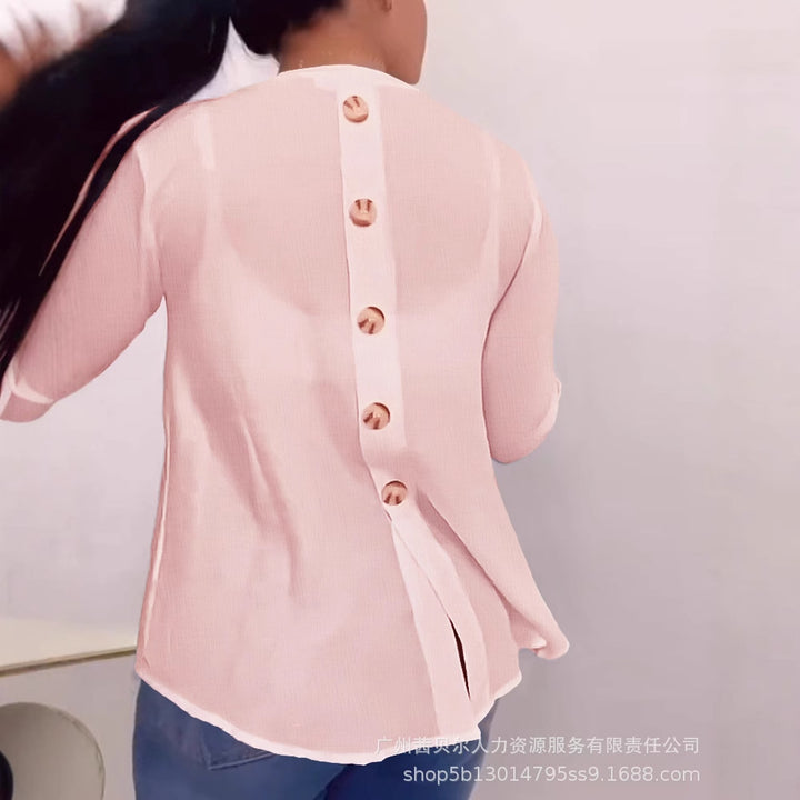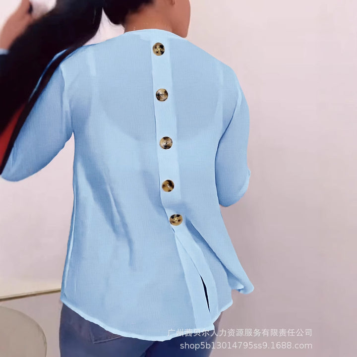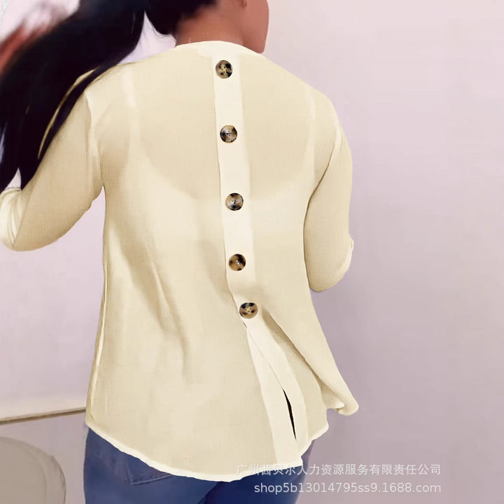 LZR19192 European and American women's clothing new white v-neck back button-down cardigan long-sleeved top