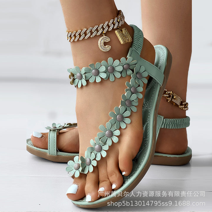 LZT5366 Bohemian sandals women's shoes pinch feet summer new toe flower flats Korean version flat heel