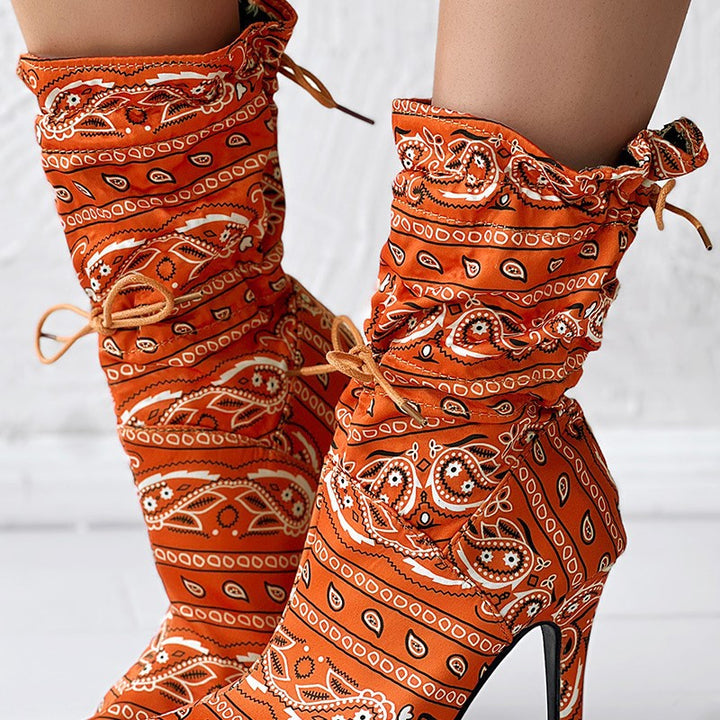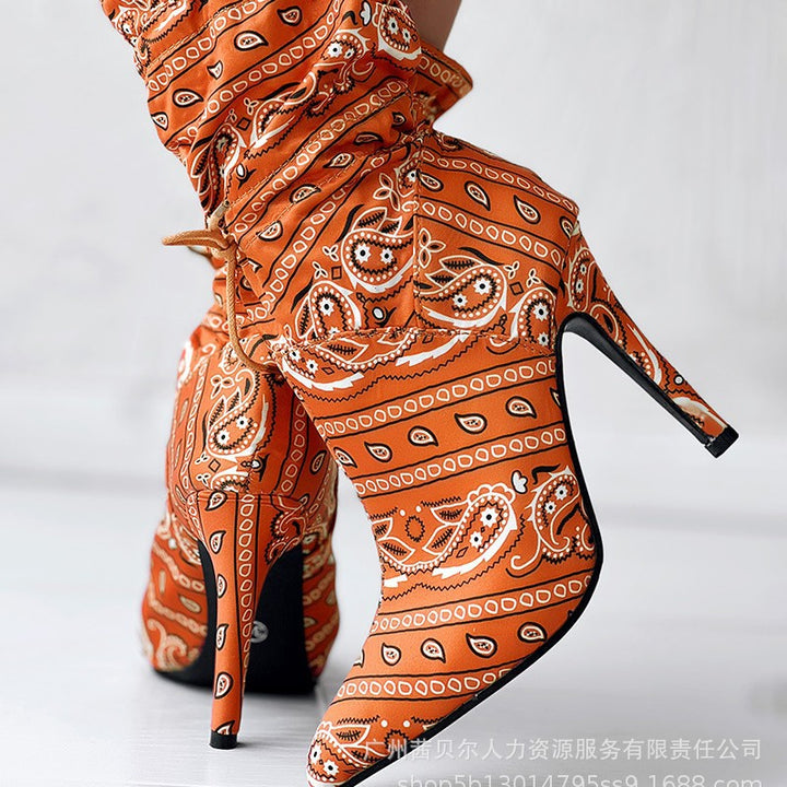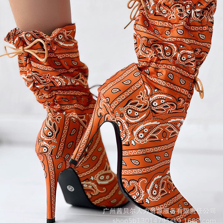 LZT6091A1 new large size women's shoes camouflage Roman style color matching elastic band ultra-high heel single shoes women