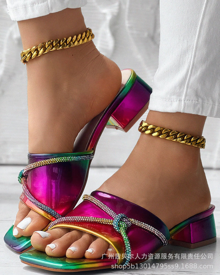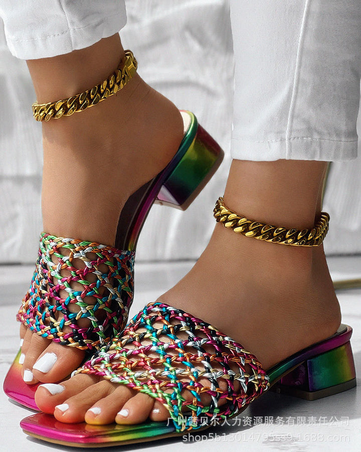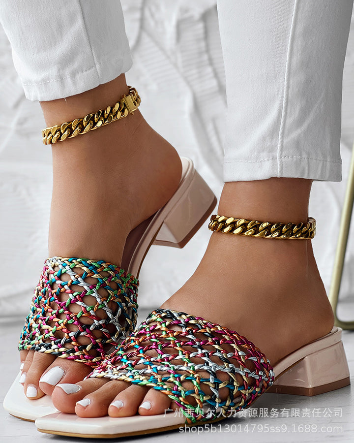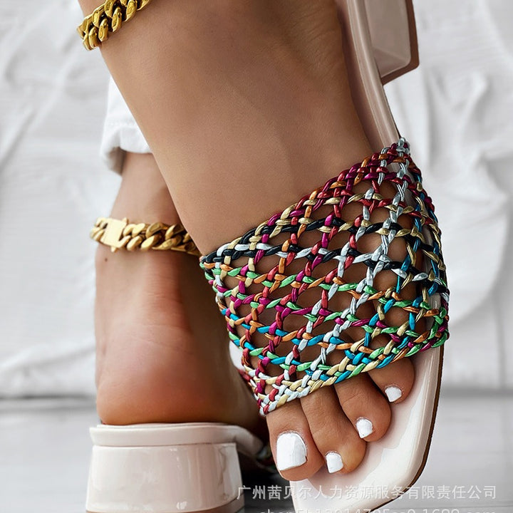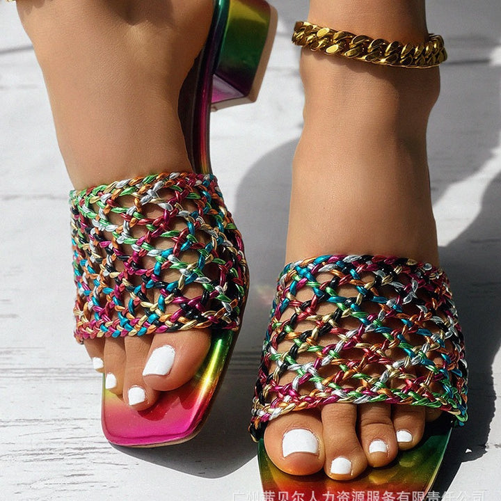 LZT8261 large-size slippers new European and American color woven thick-heeled shoes