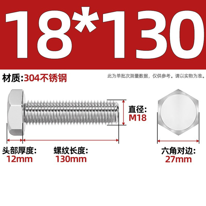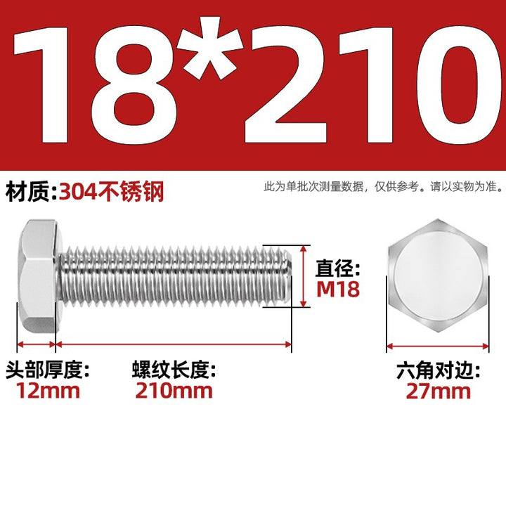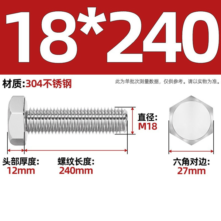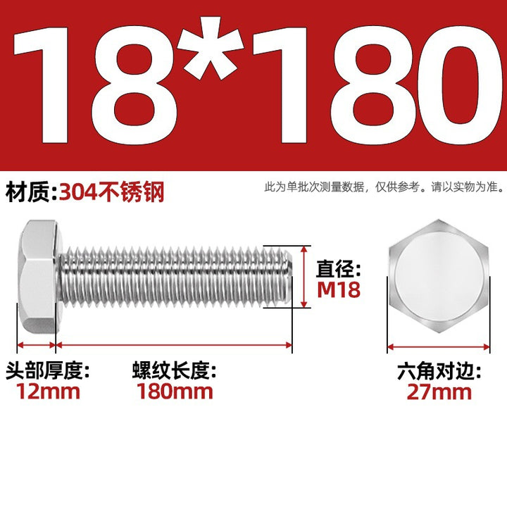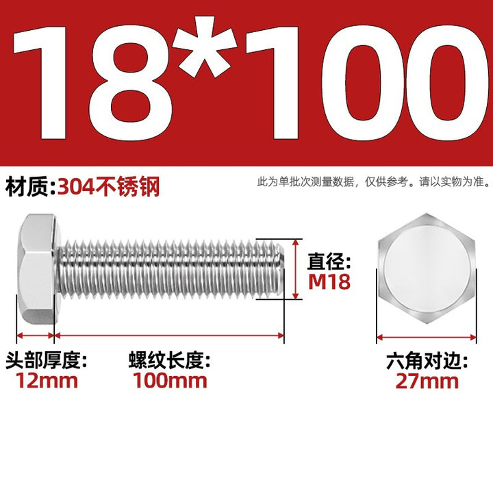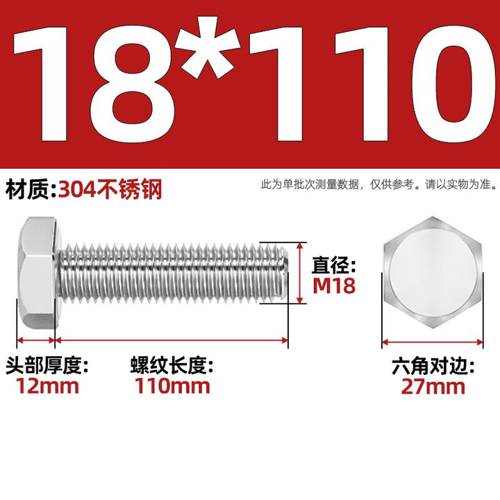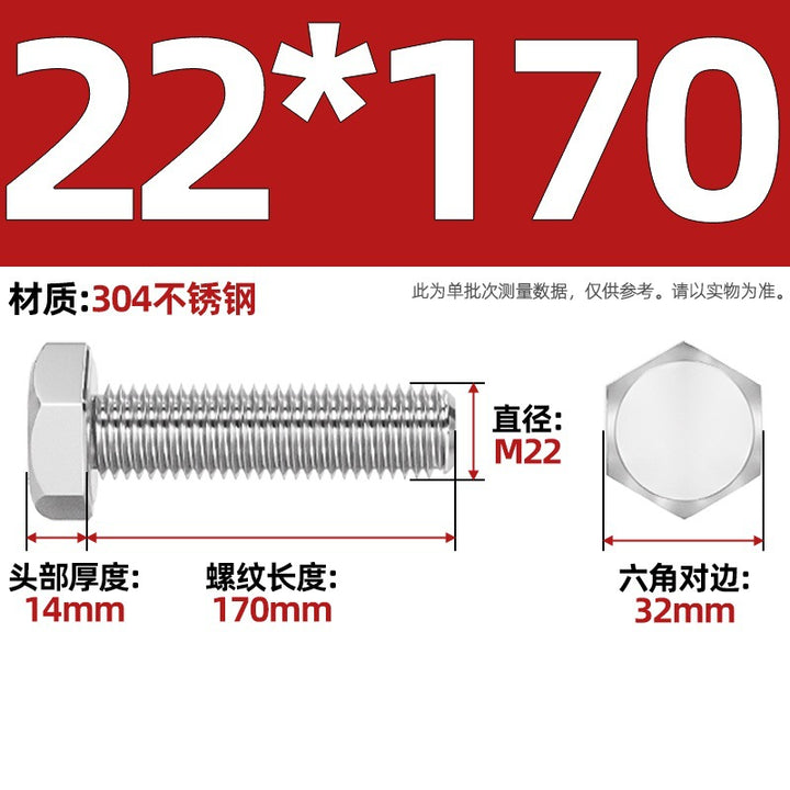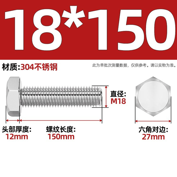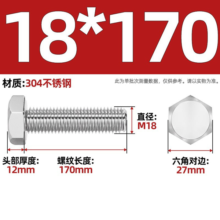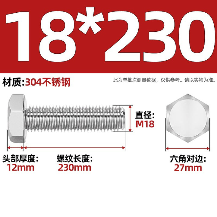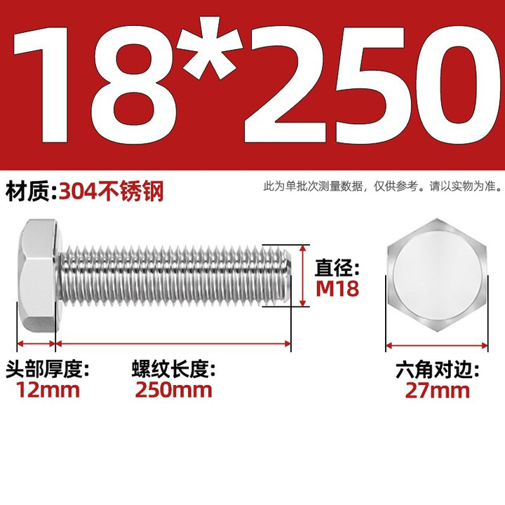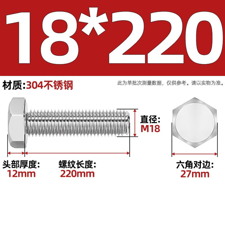 M18-M36 Hexagon Screw 304 Stainless Steel Extended Full Thread Bolt M20M22M24M27M30M33mm