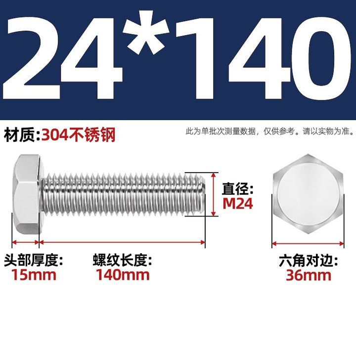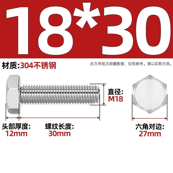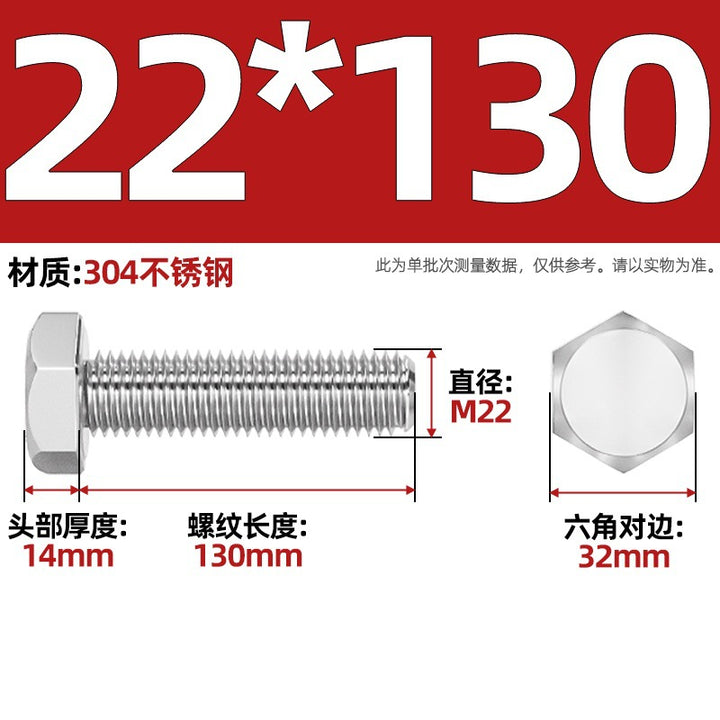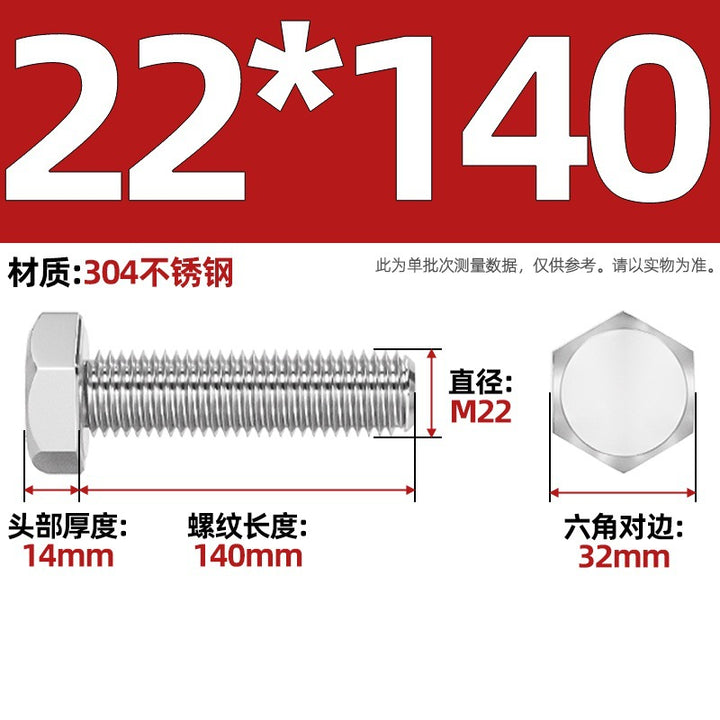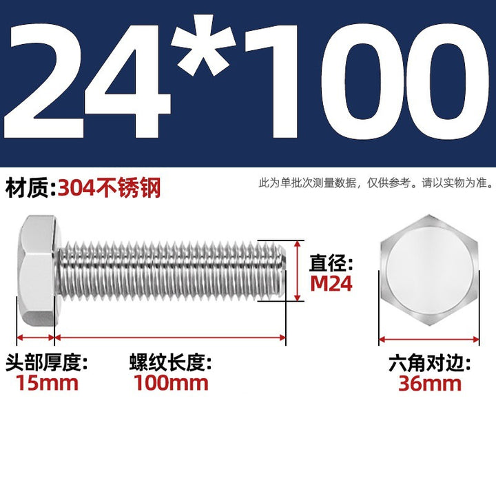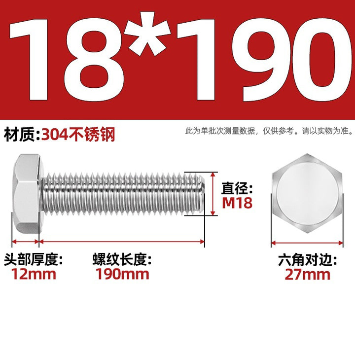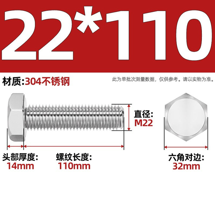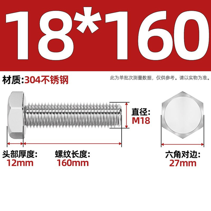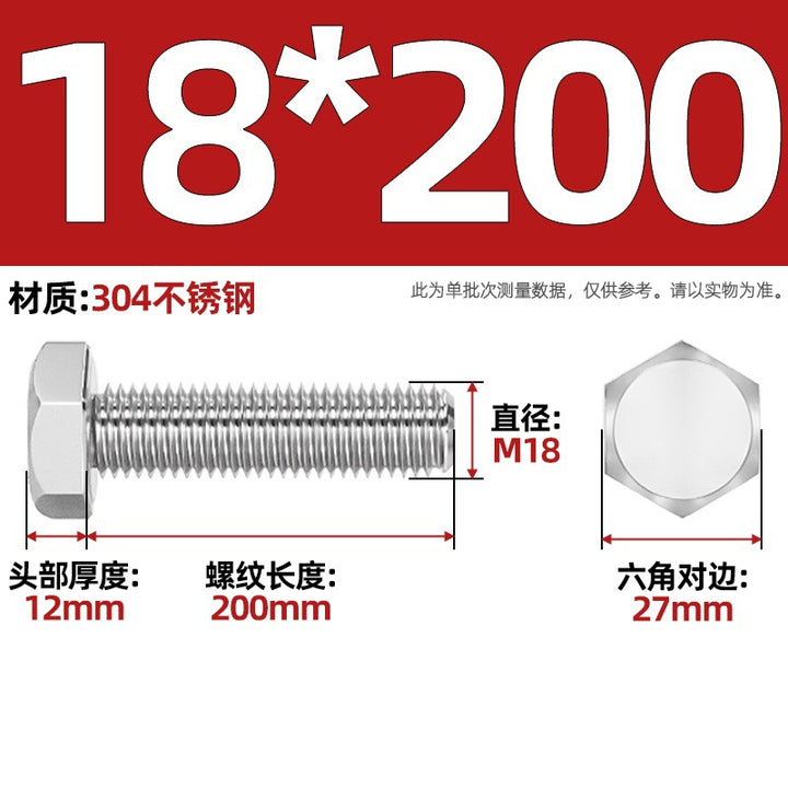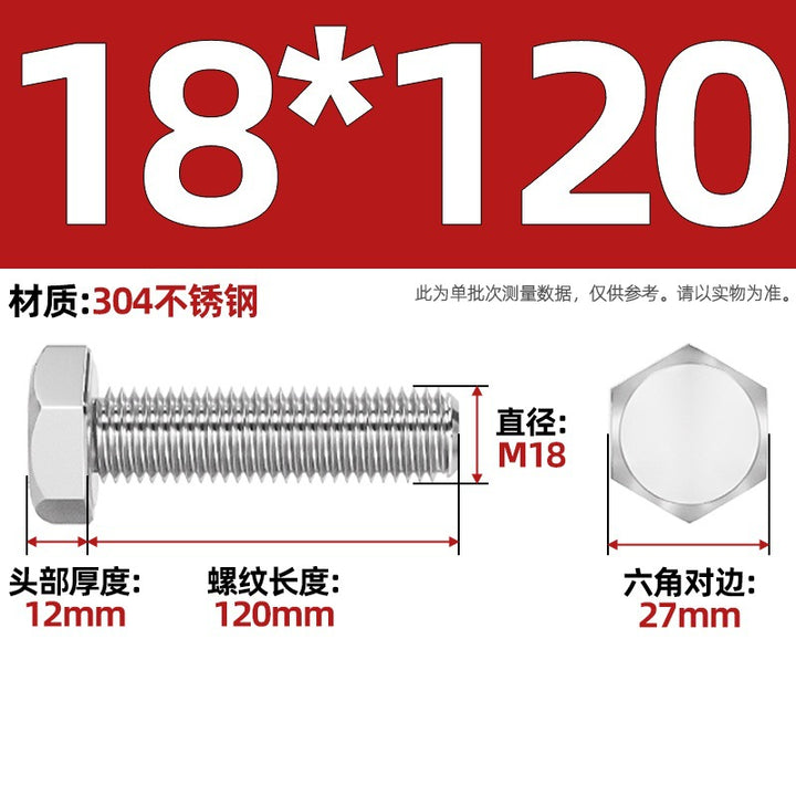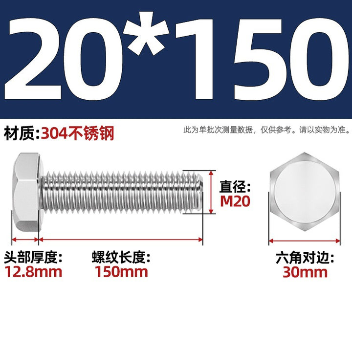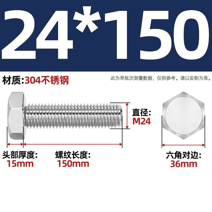 M18-M36 Hexagon Screw 304 Stainless Steel Extended Full Thread Bolt M20M22M24M27M30M33mm