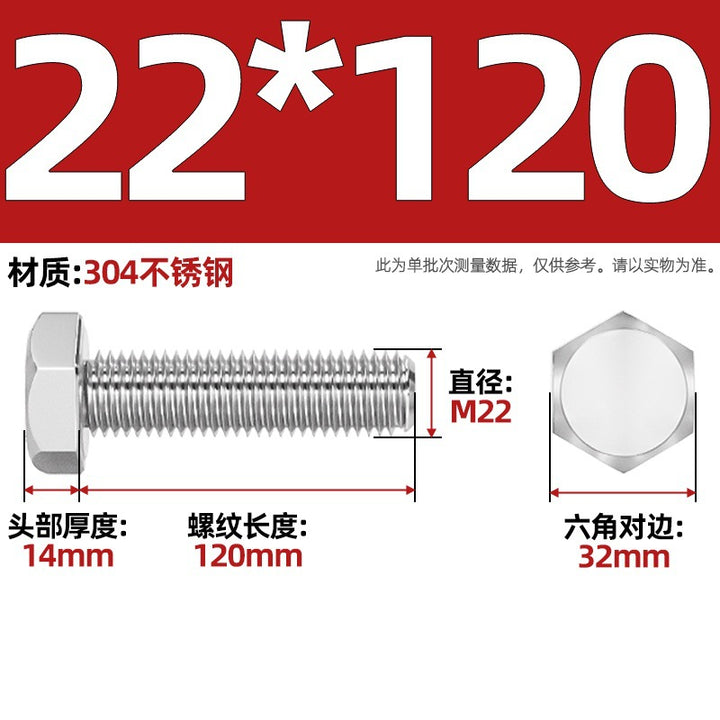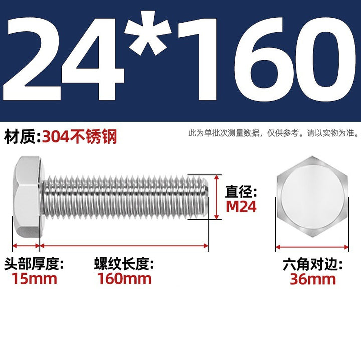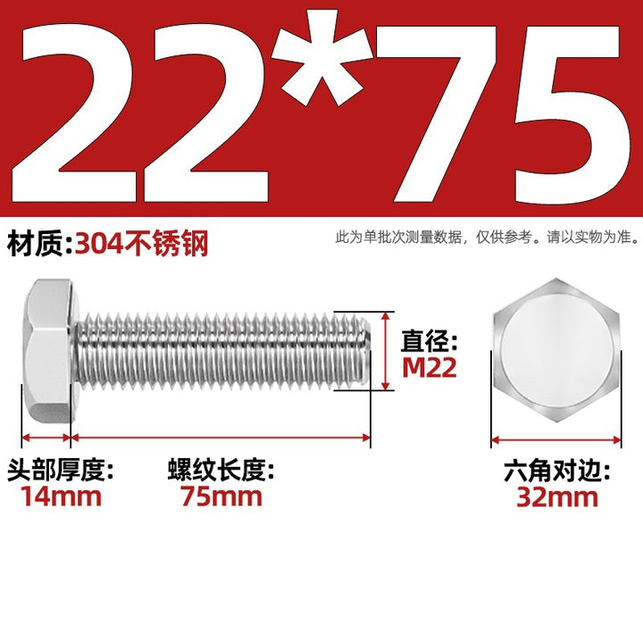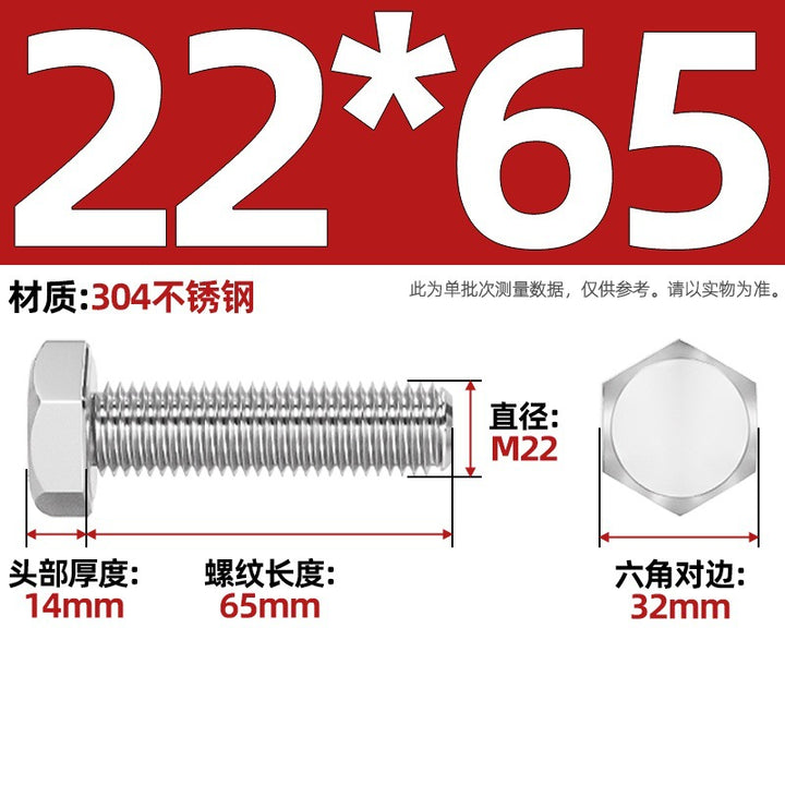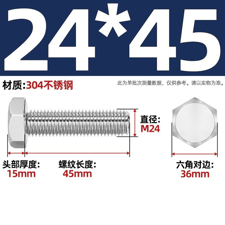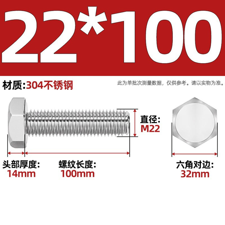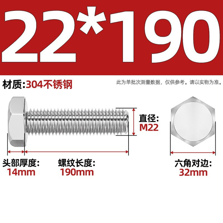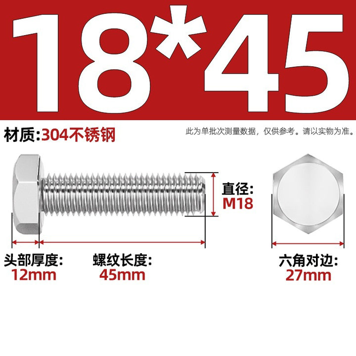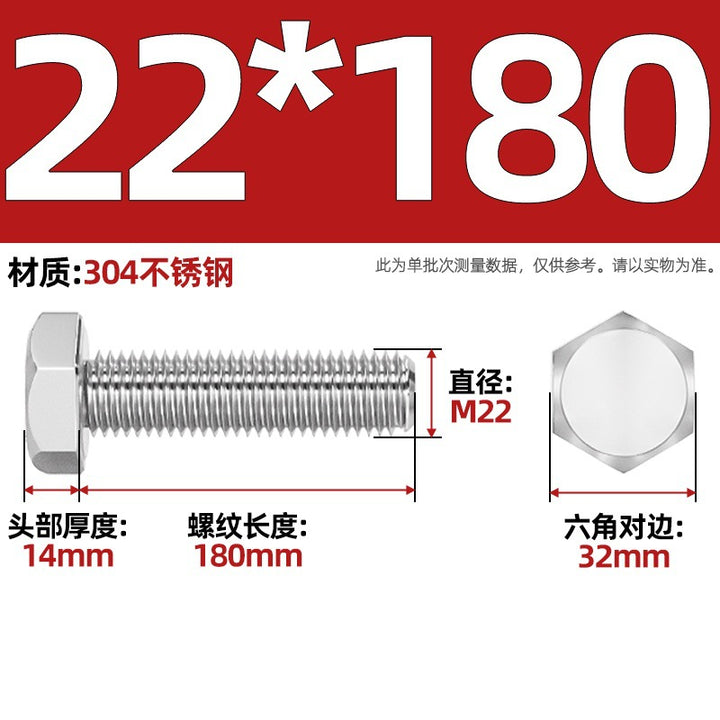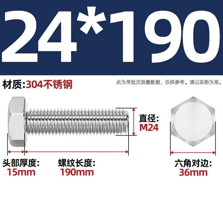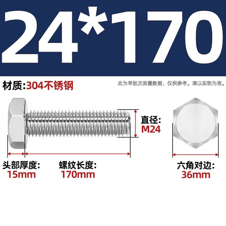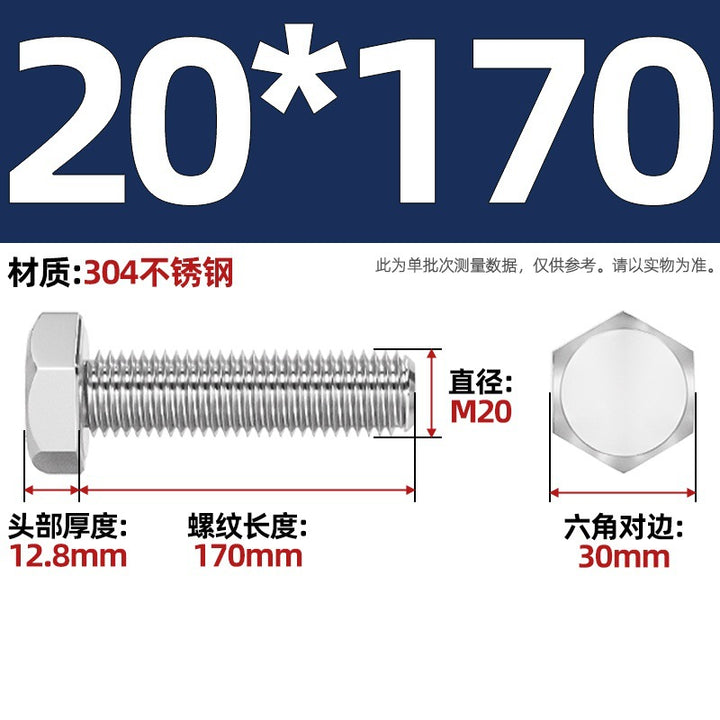 M18-M36 Hexagon Screw 304 Stainless Steel Extended Full Thread Bolt M20M22M24M27M30M33mm