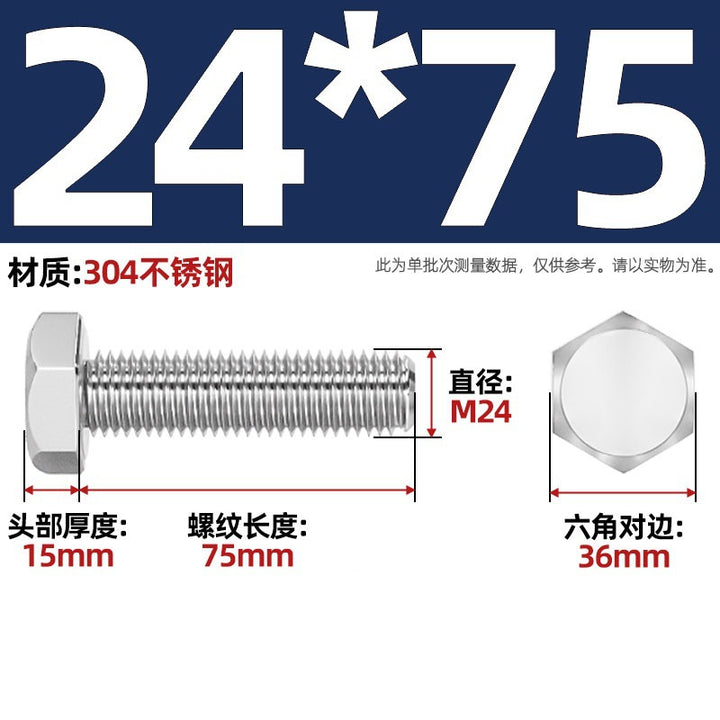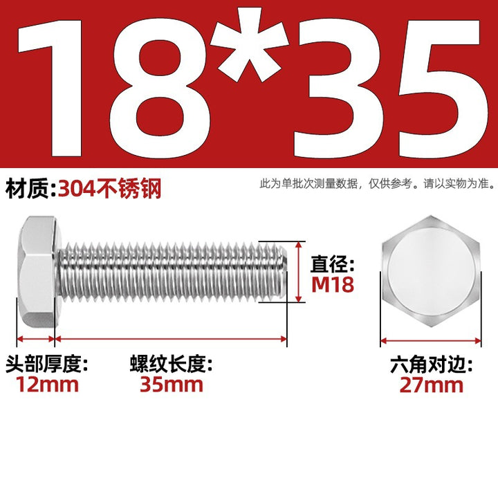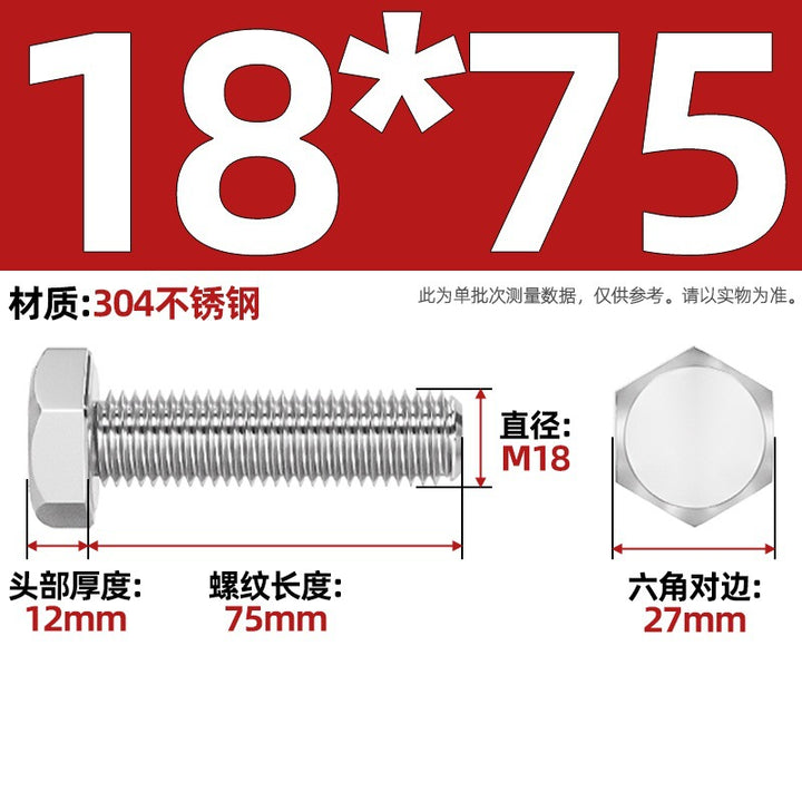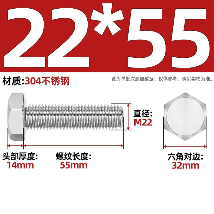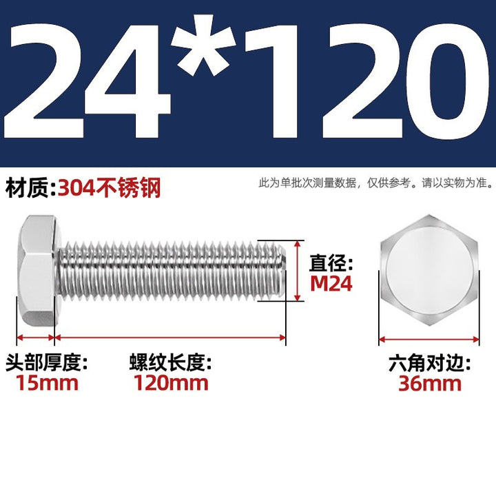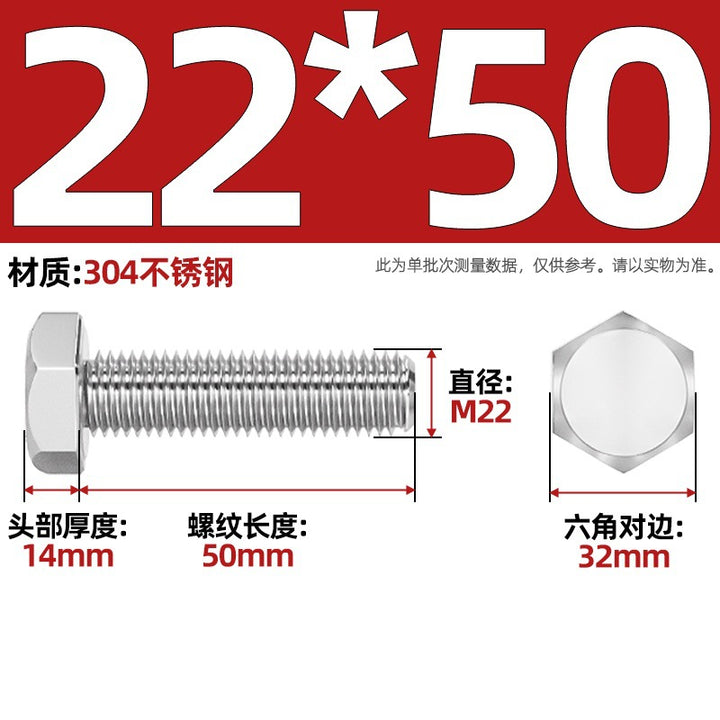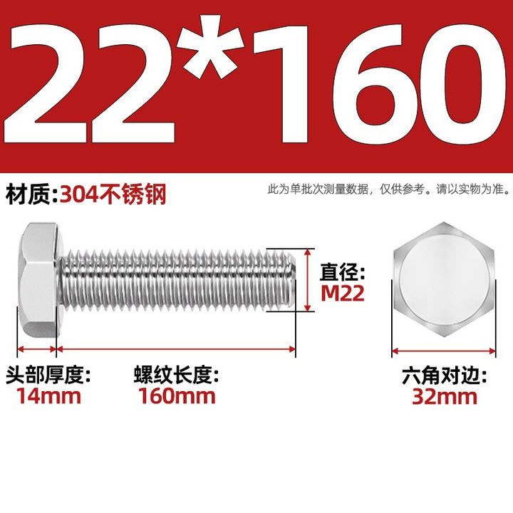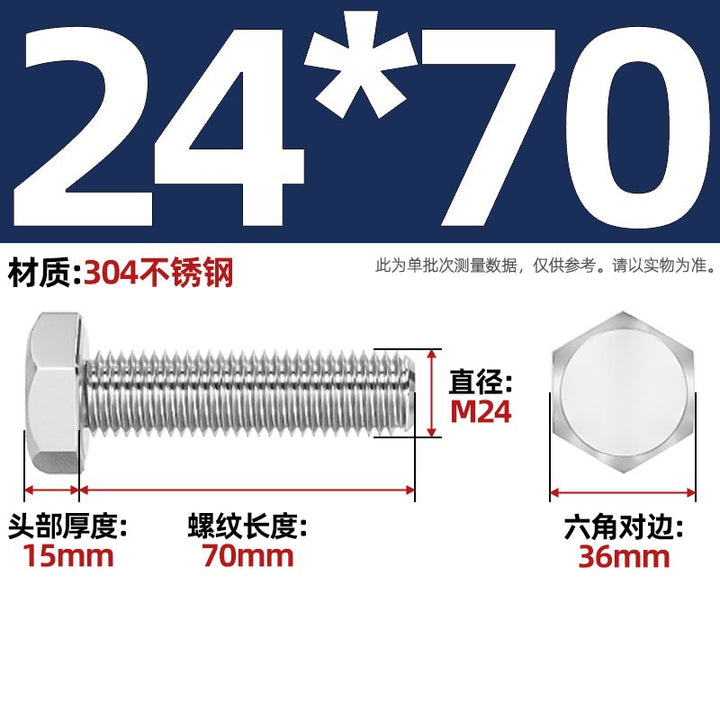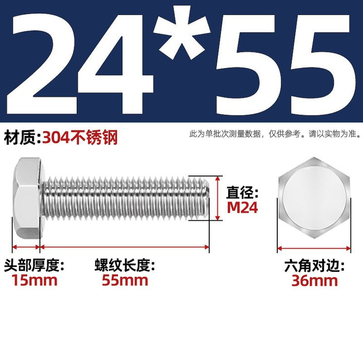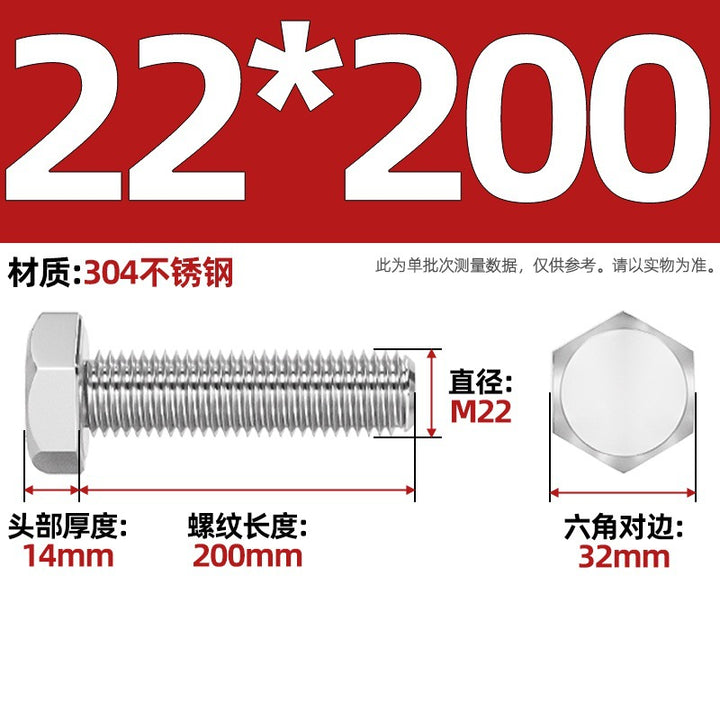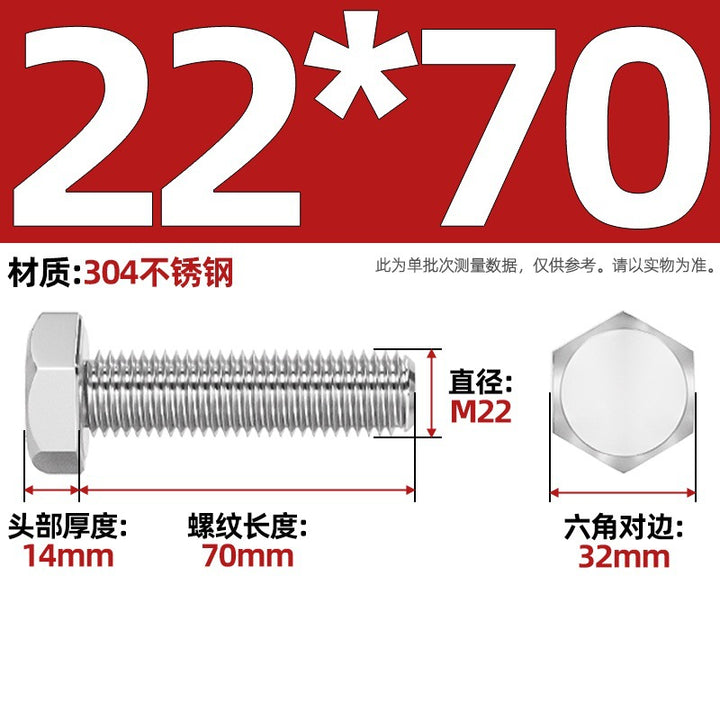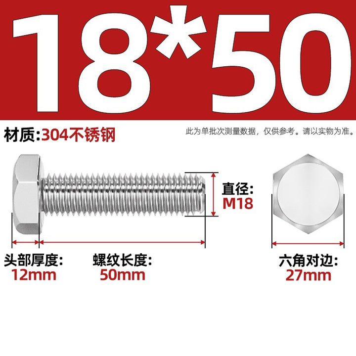 M18-M36 Hexagon Screw 304 Stainless Steel Extended Full Thread Bolt M20M22M24M27M30M33mm
