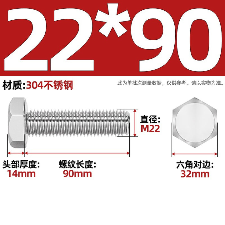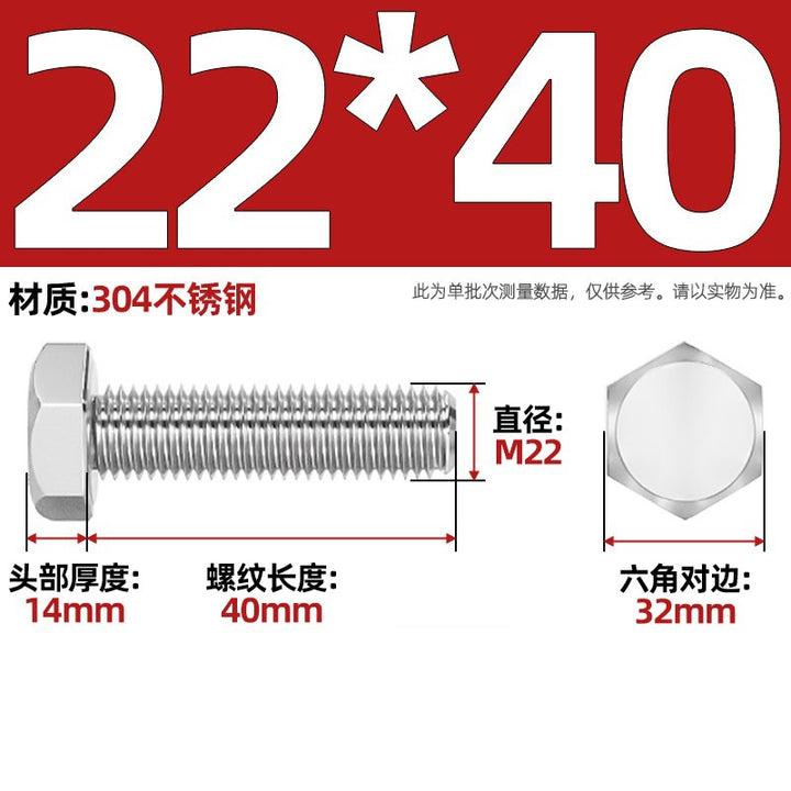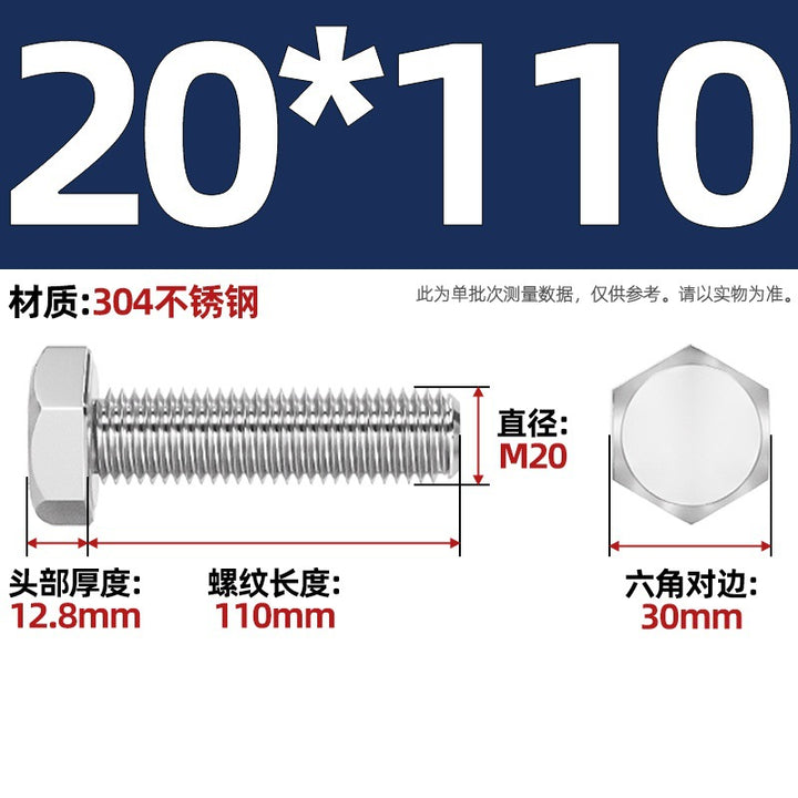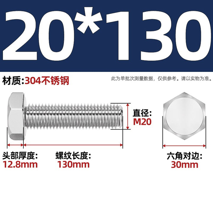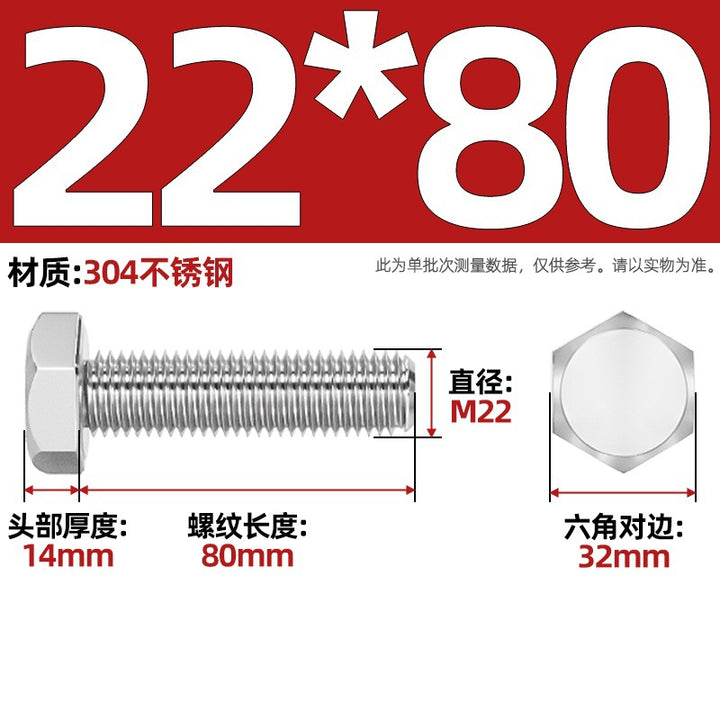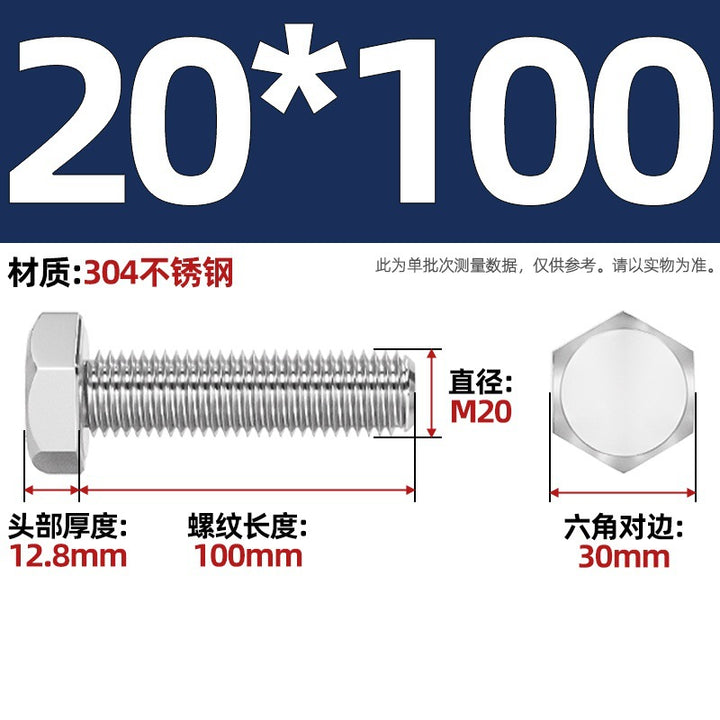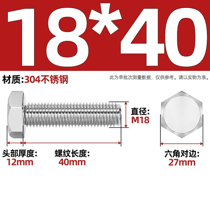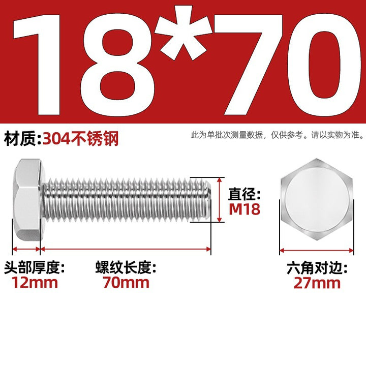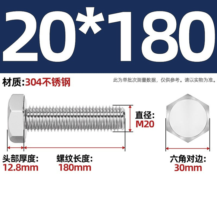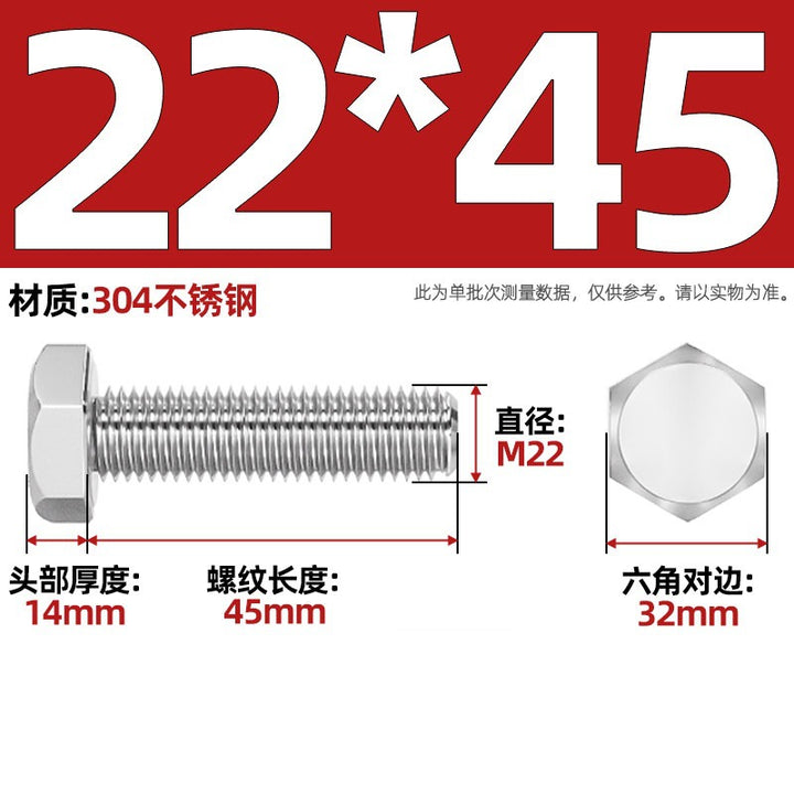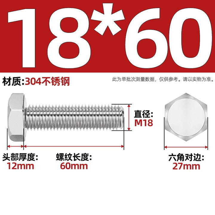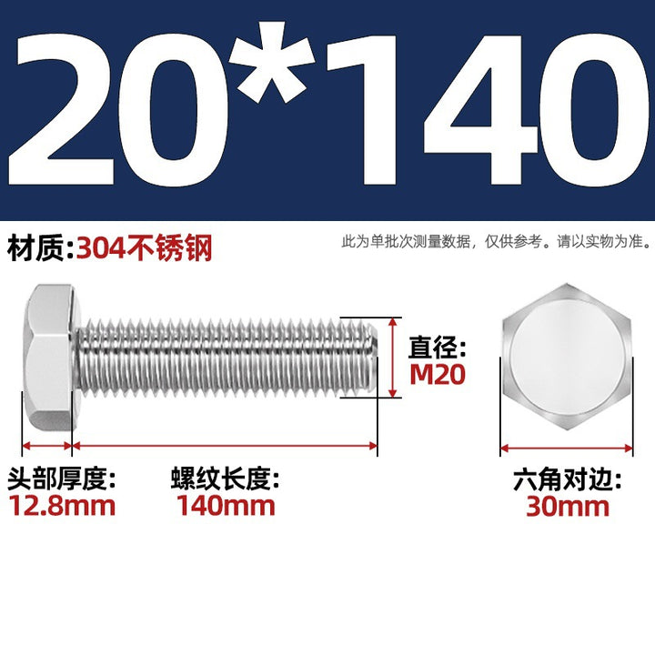 M18-M36 Hexagon Screw 304 Stainless Steel Extended Full Thread Bolt M20M22M24M27M30M33mm